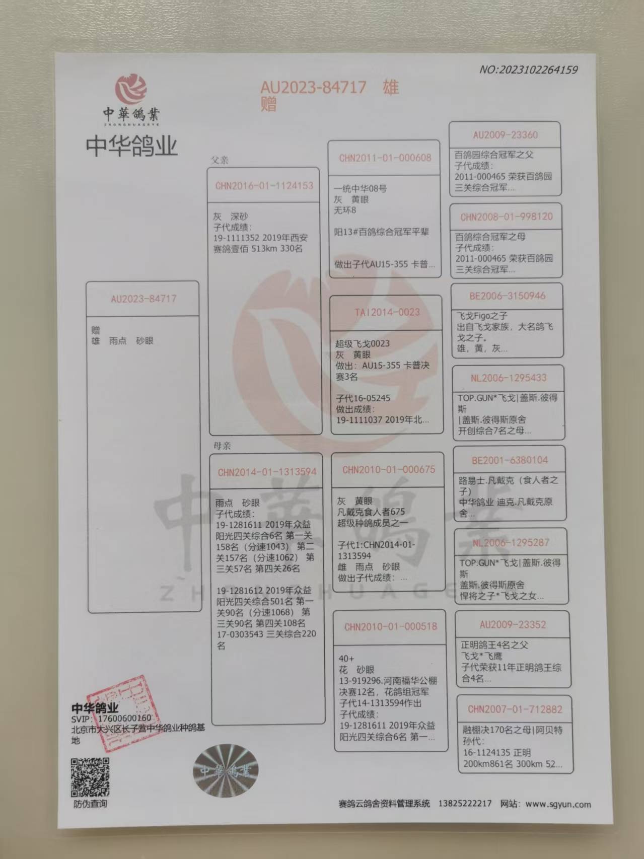 注明:5年以上的老鴿子更換環(huán)境有可能造成不能作育,請你謹(jǐn)慎出價