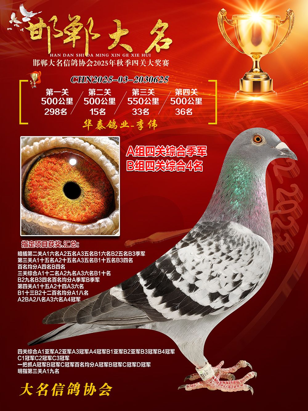 - 當(dāng)前查看拍賣鴿:四關(guān)鴿王A組季軍