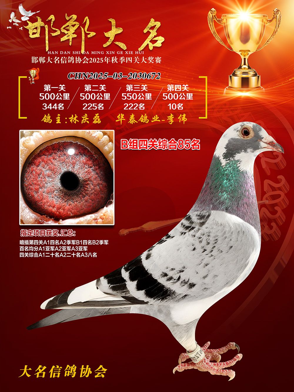 運輸費用:與競拍款一并支付,汽運及火車運輸:按次數(shù)計算,每次100元,得標2羽及以上按200元計算?者\:按次數(shù)計算,得標1羽及多羽,每次均按300元支付,鴿友必須自行到指定機場或可到達之長途車站取鴿。