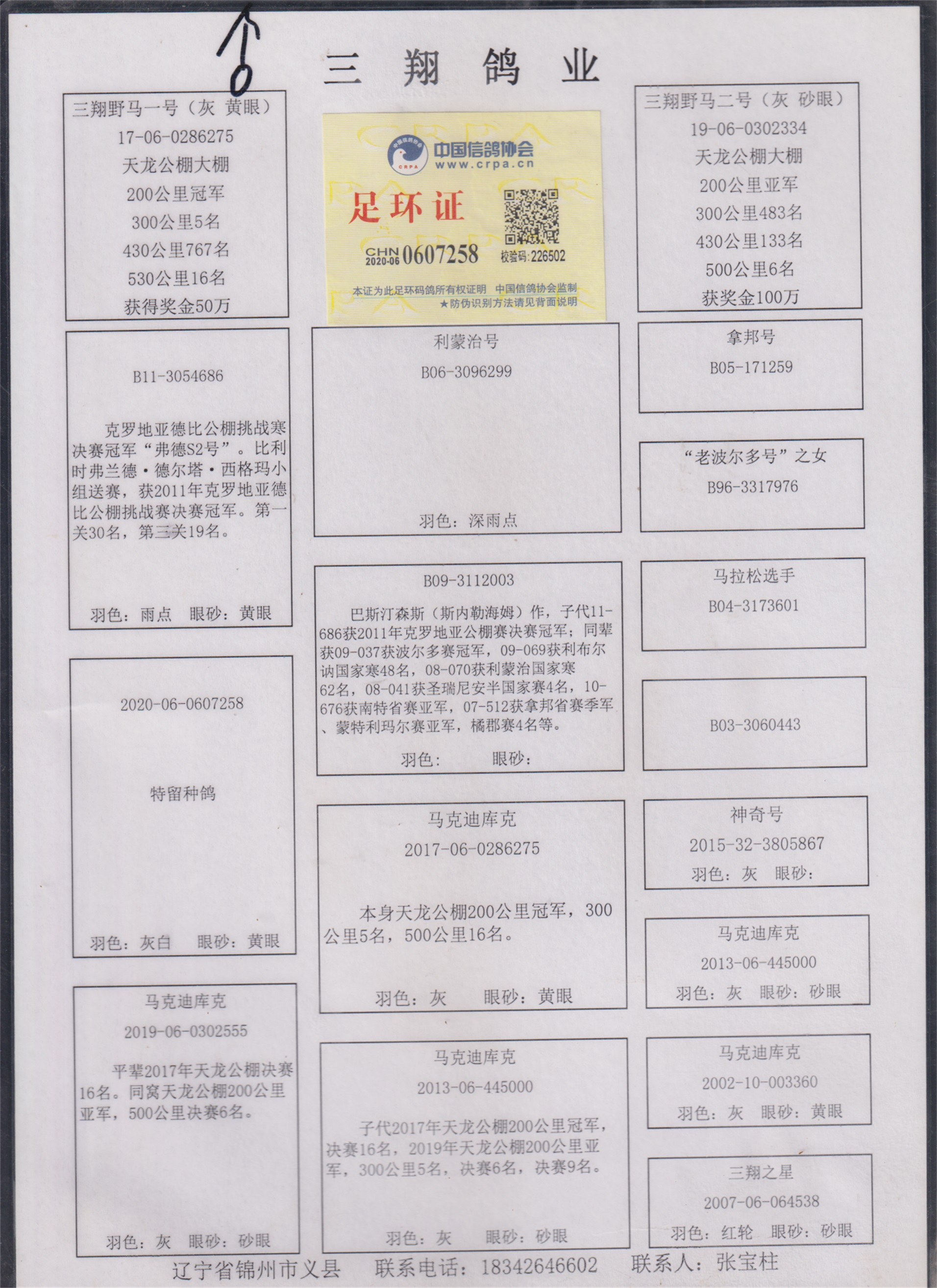 ◆母: CHN19-06-0302555 “三翔鴿業(yè)”