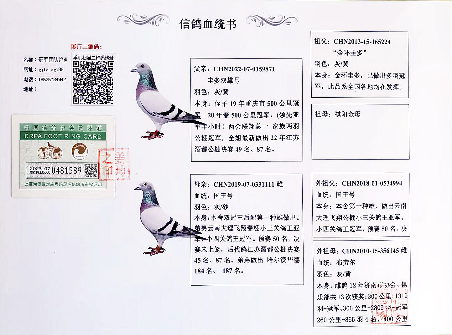 血統(tǒng)書足環(huán)卡隨鴿發(fā)出,低價位高品質(zhì)幼鴿,種賽皆宜。良心做人,所有成績血統(tǒng)假一賠百,不做虛假宣傳!當(dāng)曖贅氪菩塾啥嗄昃楹屯雅卸轄齬┎慰跡�