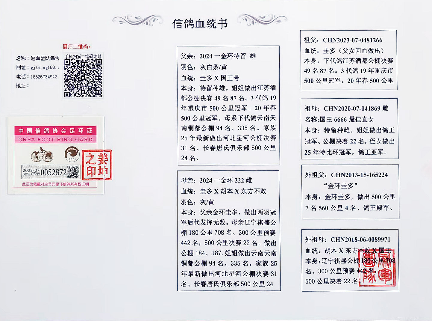 血統(tǒng)書足環(huán)卡隨鴿發(fā)出,低價位高品質(zhì)幼鴿,種賽皆宜。良心做人,所有成績血統(tǒng)假一賠百,不做虛假宣傳!當(dāng)曖贅氪菩塾啥嗄昃楹屯雅卸轄齬┎慰跡�