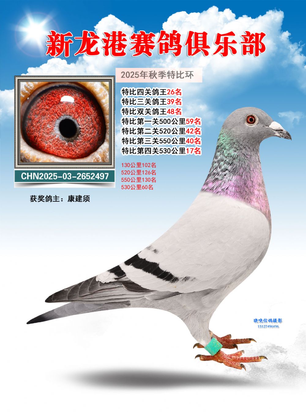 | 1621420 | 新龍港俱樂部四關鴿王冠軍 | ¥1000元 | 0次 |