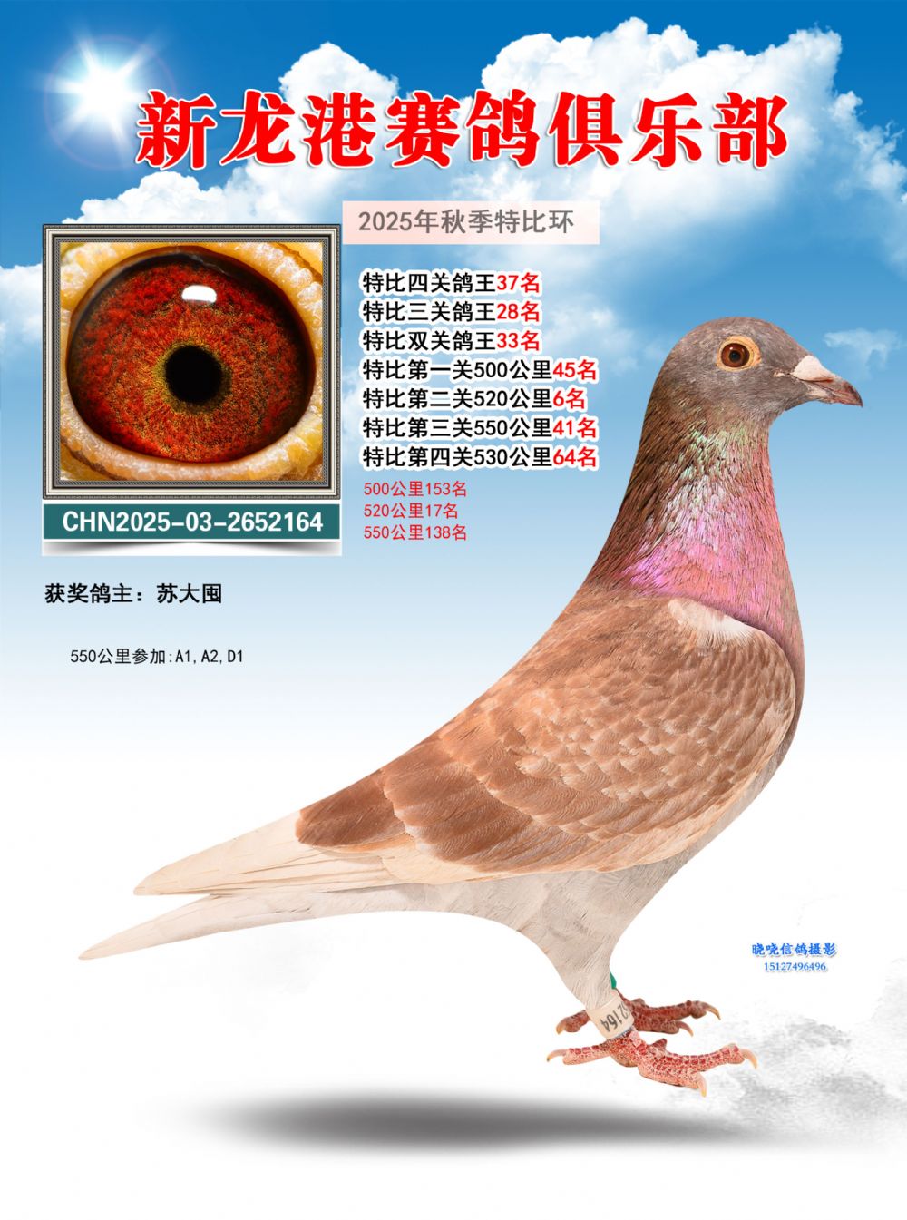 | 1621421 | 新龍港俱樂部四關鴿王亞軍 | ¥1000元 | 0次 |