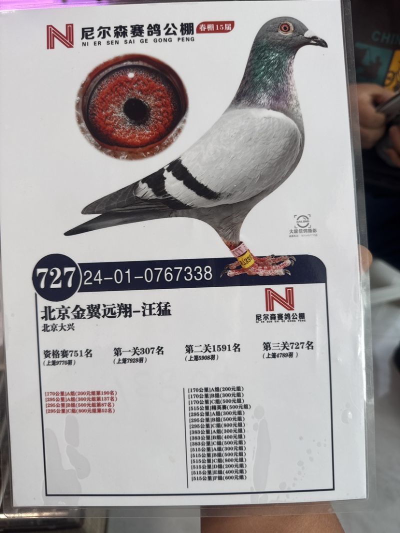 | 1621692 | 9.公棚決賽55名,三關(guān)鴿王9名 | ¥200元 | 1次 |