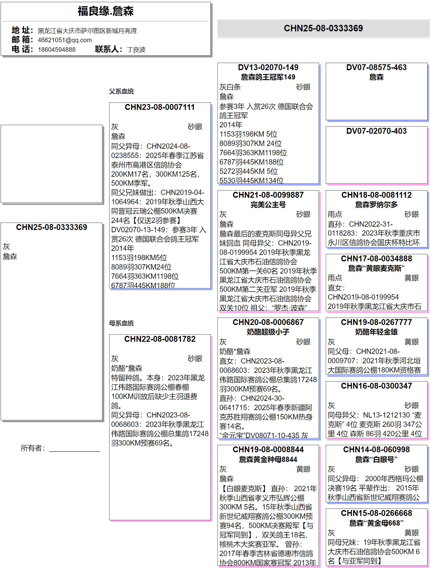 父:詹森“鴿王直子111”CHN2023-08-0007112 灰 砂