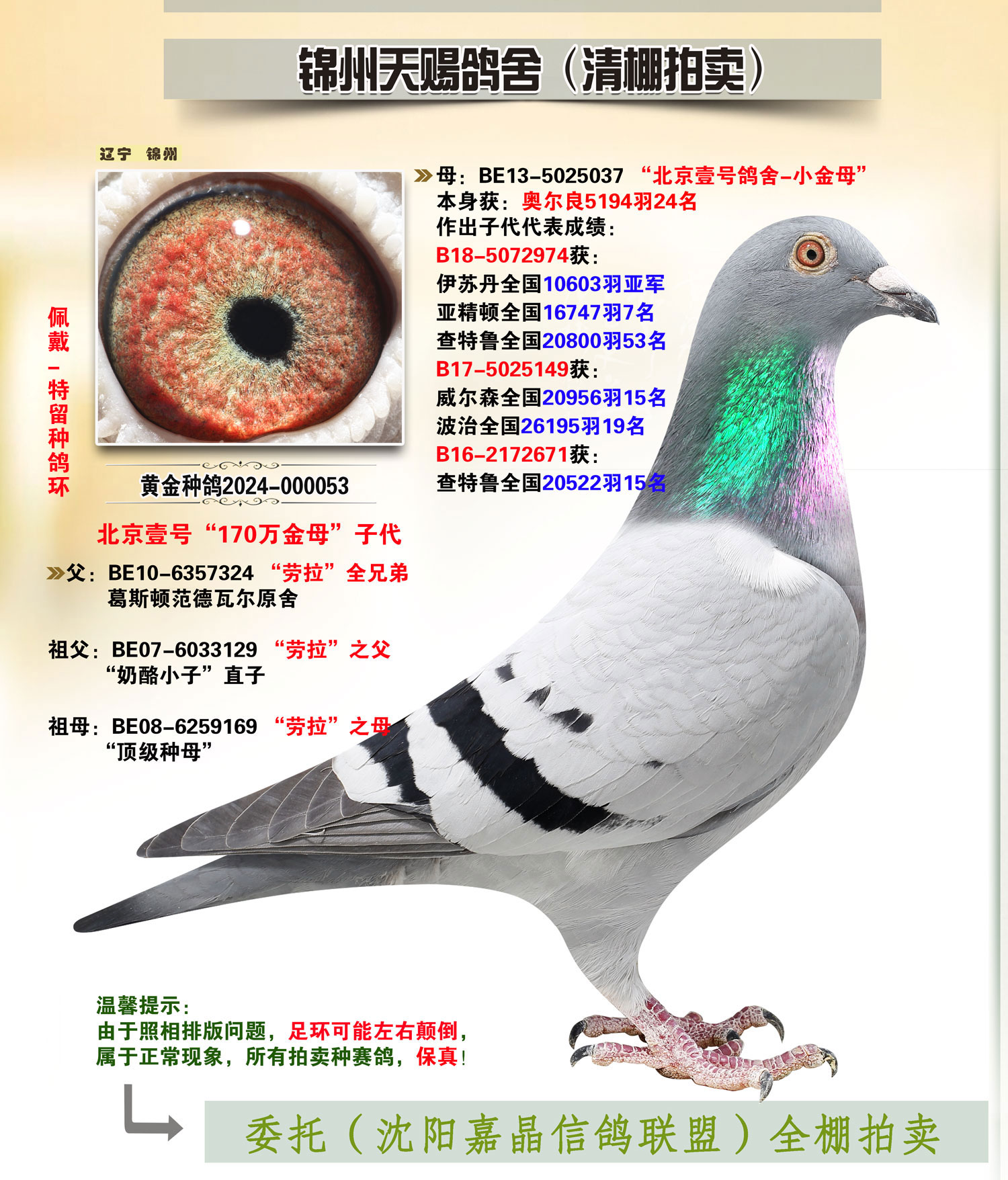 錦州天賜鴿舍,種鴿陣容十分強(qiáng)大,國(guó)內(nèi)外最頂級(jí)輩分,常年征戰(zhàn)各大賽場(chǎng),成績(jī)突出,真實(shí)可查,由于年事已高,故決定清舍,此次拍賣都是老爺子多年積攢的心血,非常實(shí)戰(zhàn),最后一期,請(qǐng)珍惜。