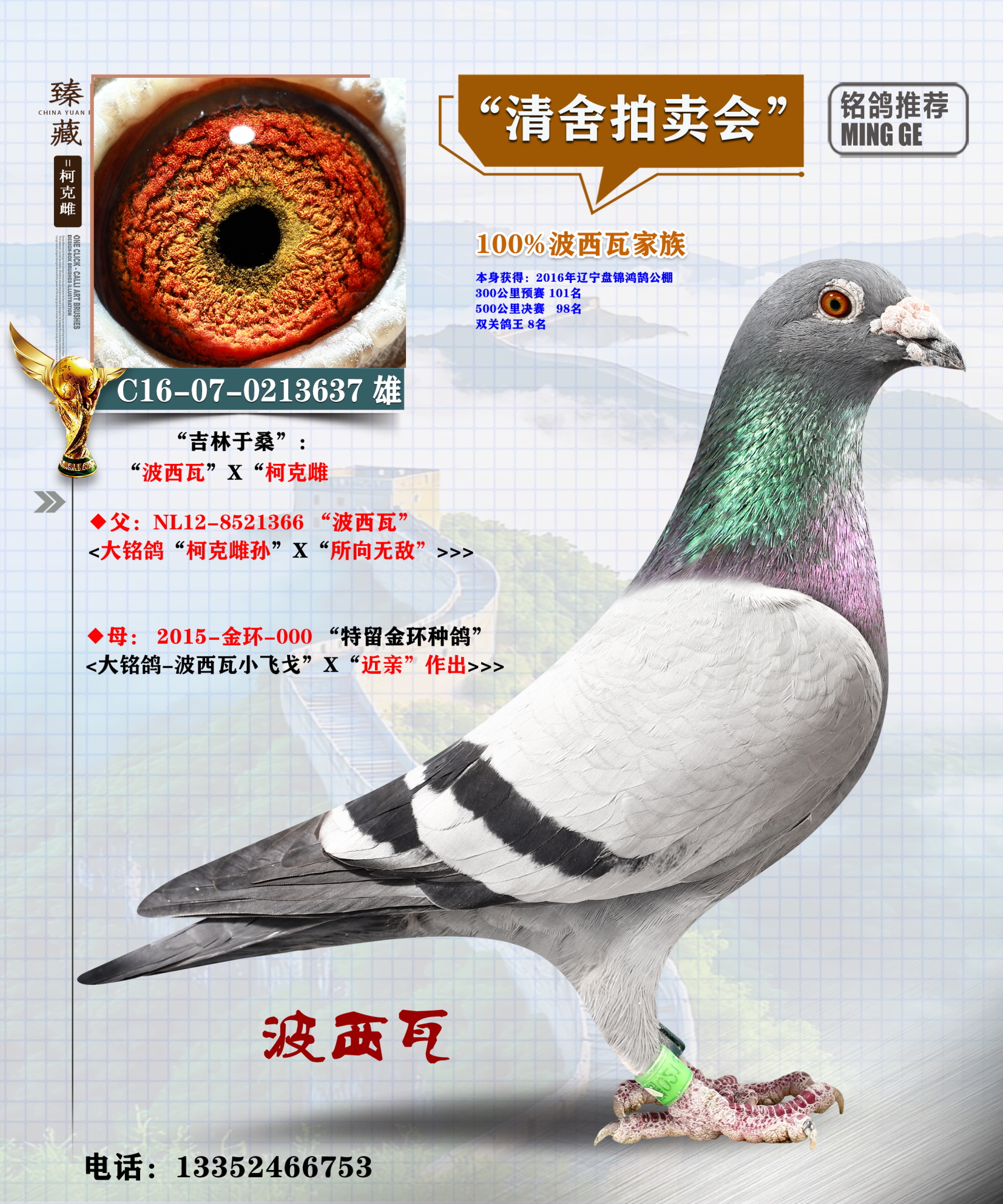 C16-07-0213637 雄 100%波西瓦家族 16年環(huán)褪色介意勿拍-鴿子永久保真