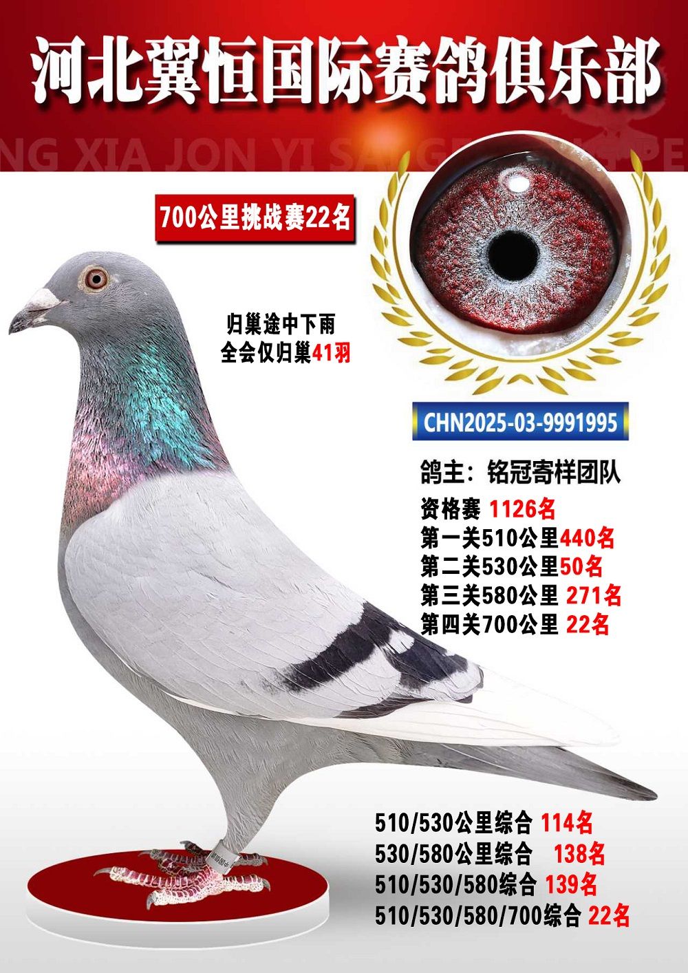 | 1621780 | 血戰(zhàn)到底秋季700公里全會僅歸巢41羽18名 | ¥300元 | 0次 |