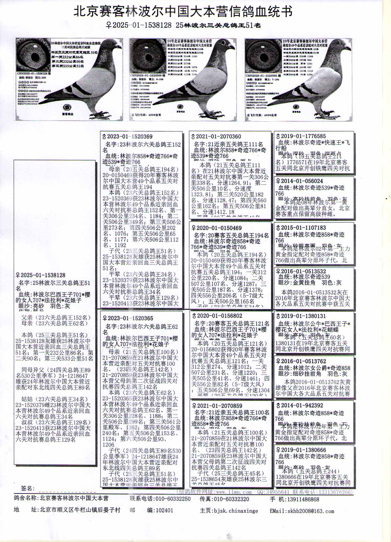 25林波爾中國大本營近親回血三關(guān)總鴿王介紹