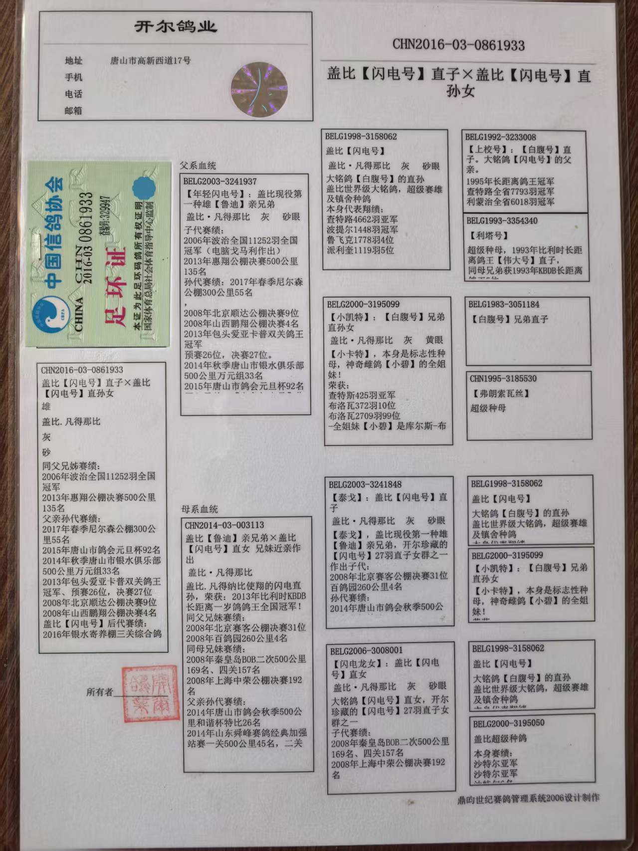 注明:5年以上的老鴿子更換環(huán)境有可能造成不能作育,請你謹慎出價