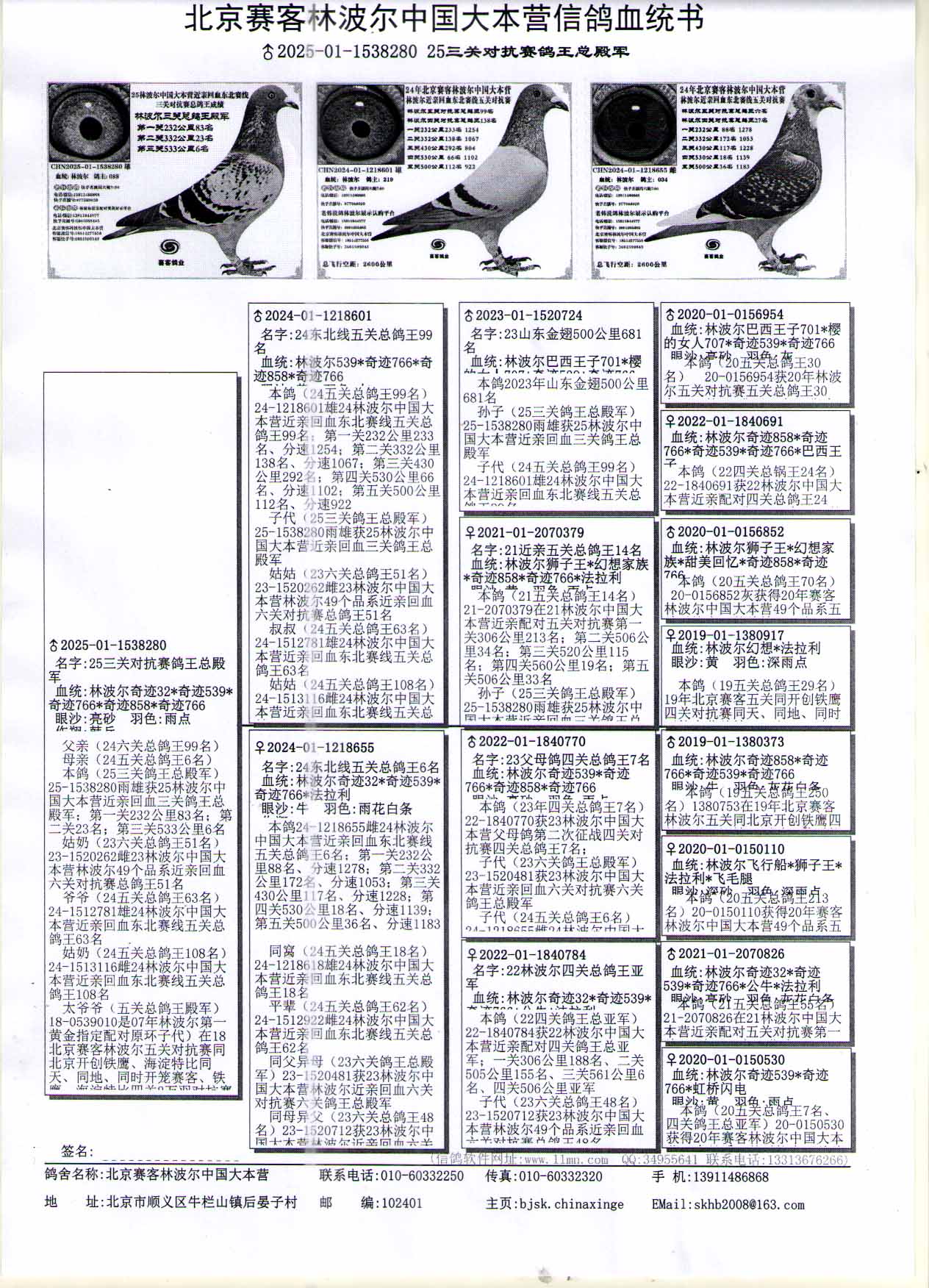 25林波爾中國大本營近親回血三關(guān)總鴿王介紹