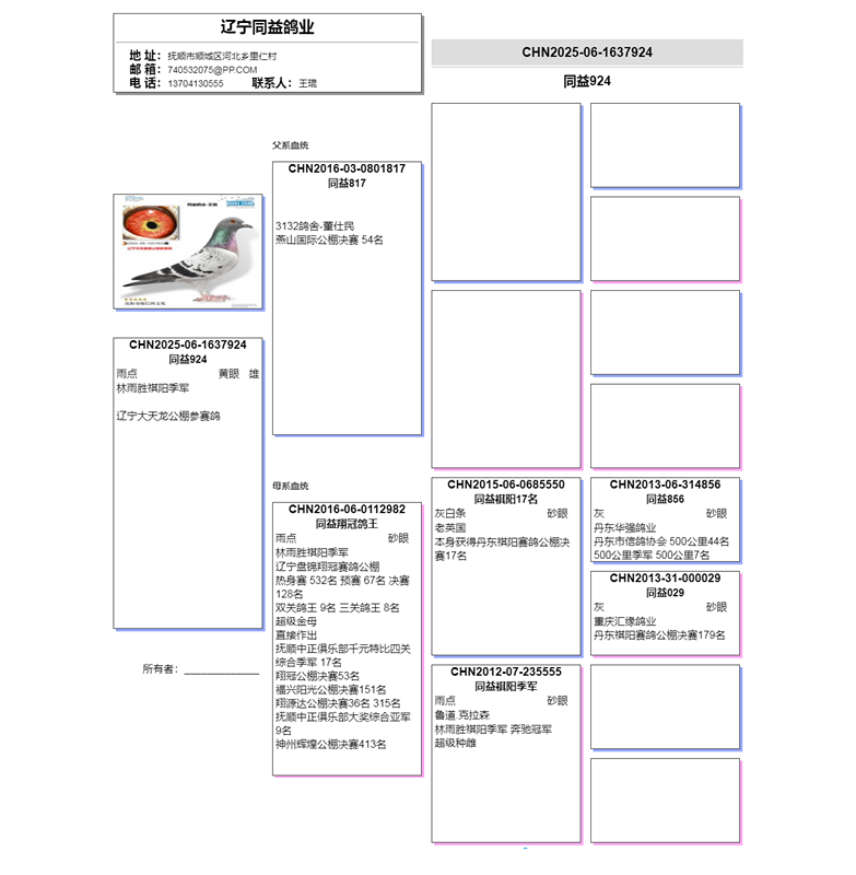 3、注明:請注意看種鴿和血統(tǒng)圖片,有的種鴿環(huán)卡丟失,有些獎鴿無環(huán)卡和獎狀和血統(tǒng),介意請勿出價(jià);