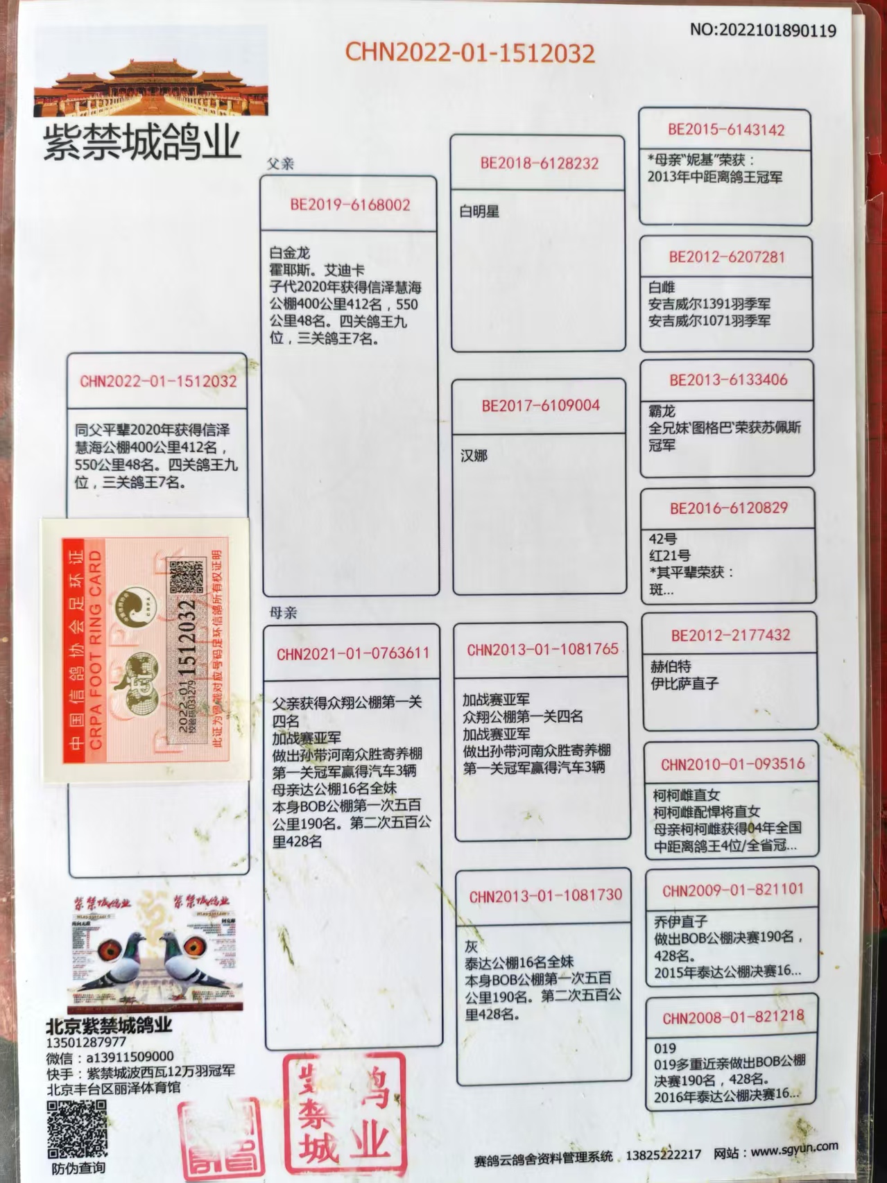 1622349 北京紫禁城鴿業(yè)-柯克雌 ¥600元 2次