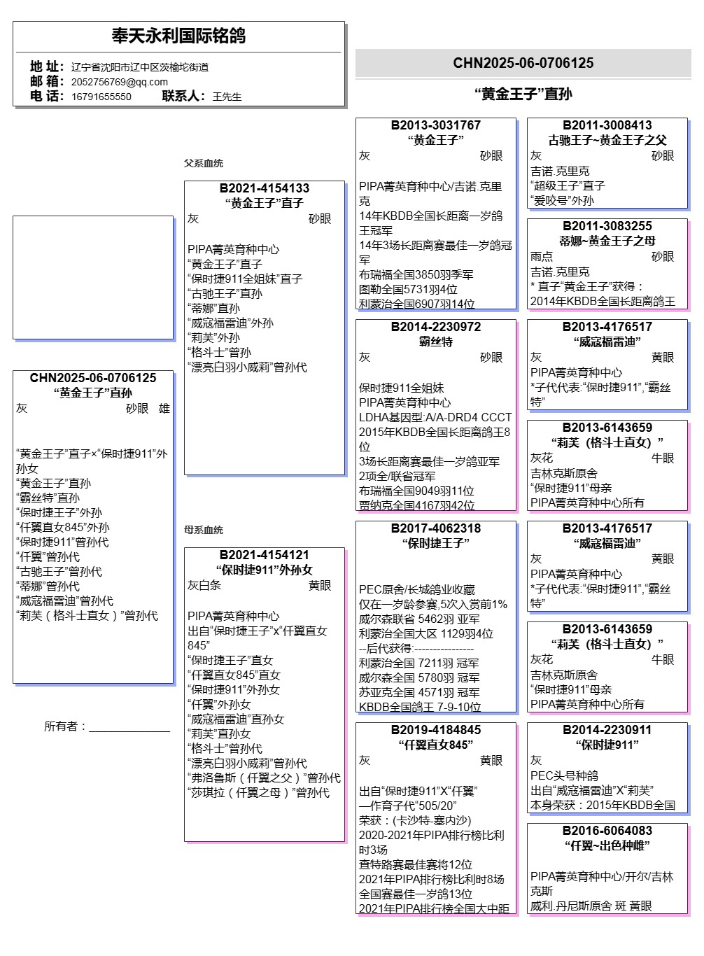 * BE22-4150782在2024-8-18獲: 威爾森全國綜合22675羽總冠軍!(直孫女)