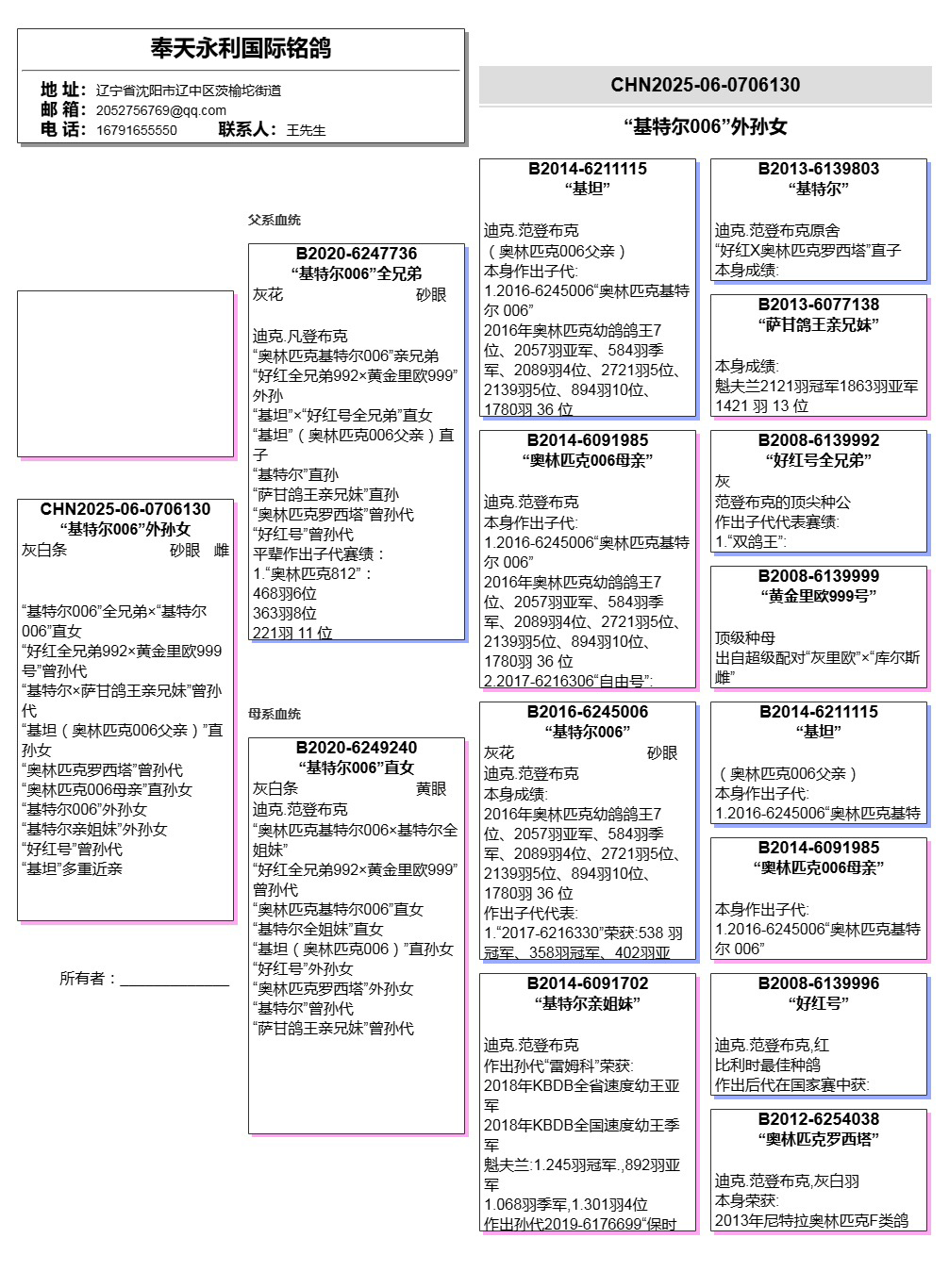 “基特爾×薩甘鴿王親兄妹”曾孫代