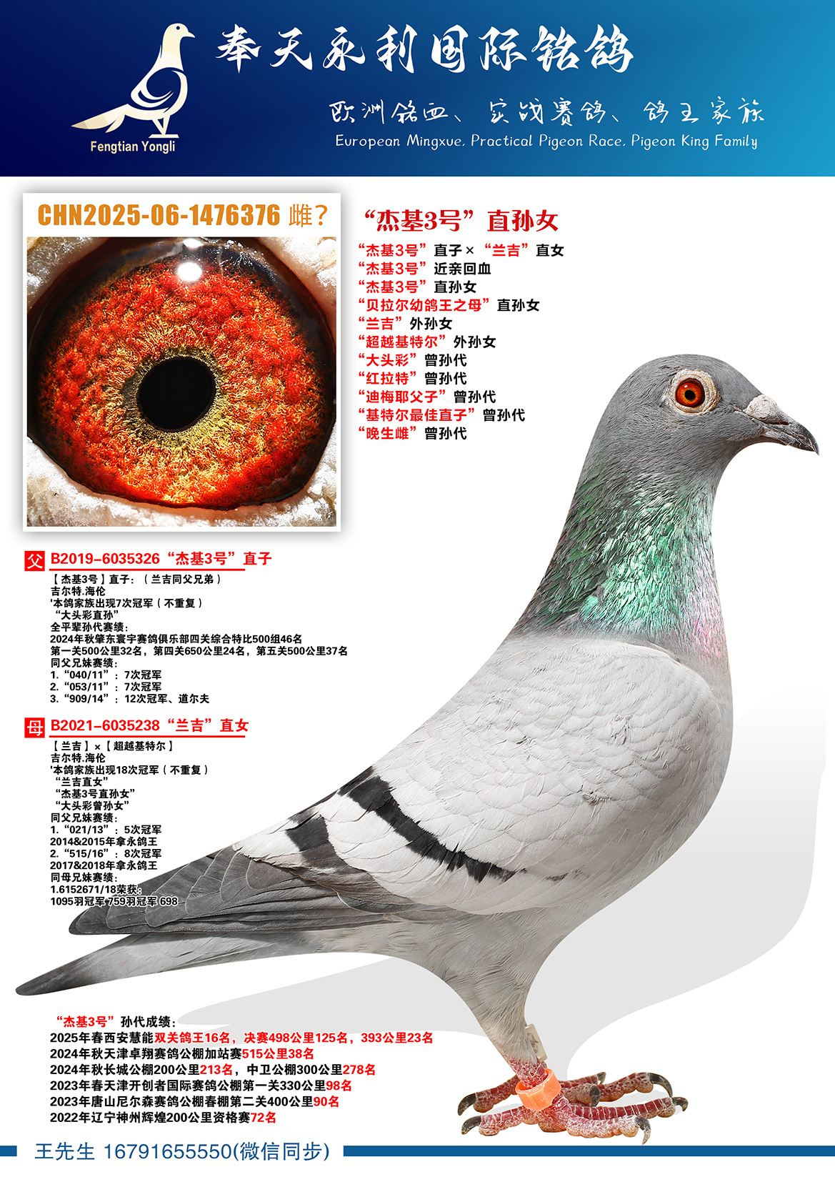 祖母:B2015-6106504“貝拉爾幼鴿王之母”