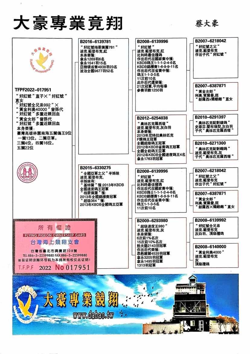 | 1623068 | 威廉迪布恩特留種鴿888 | ¥400元 | 2次 |