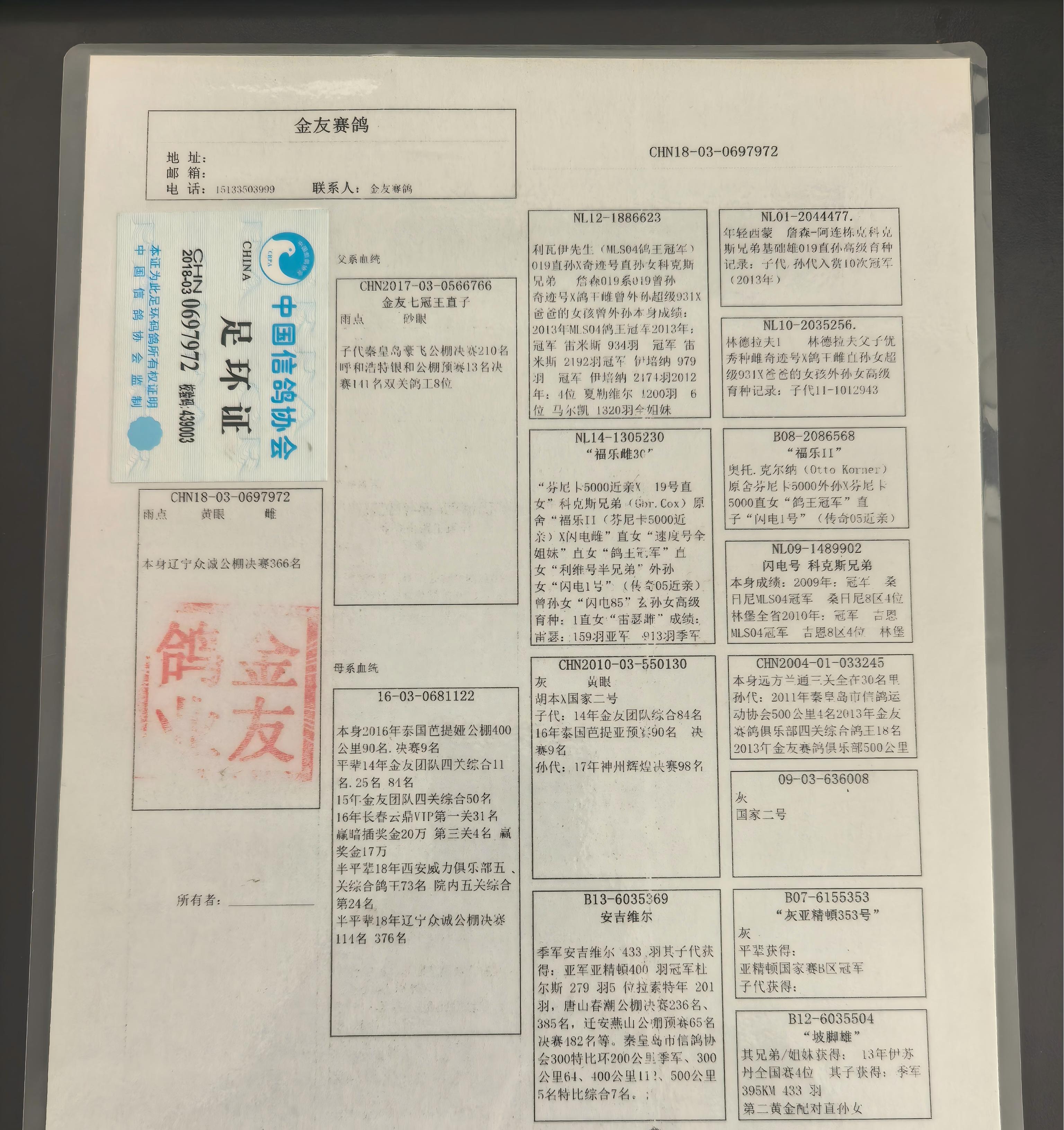 | 1623115 | 文冠鴿業(yè)開爾決賽225名 | ¥600元 | 6次 |