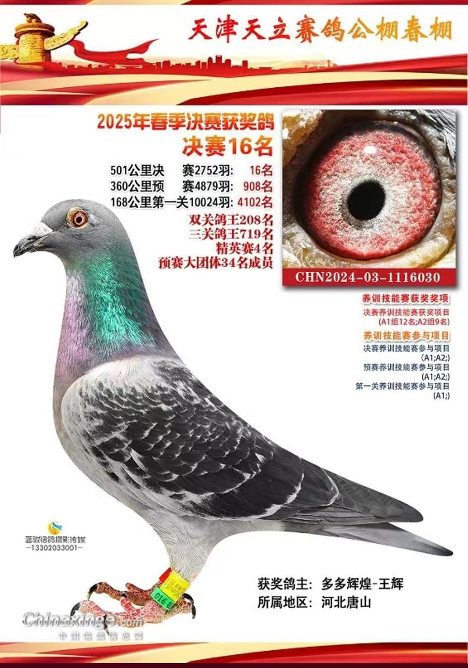 天津天立賽鴿公棚(春棚)501公里決賽16名;
