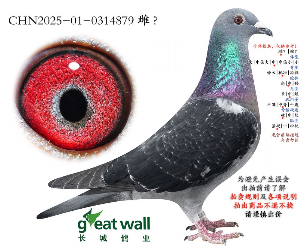 因拍賣鴿均是未做育過的種鴿或幼鴿,圖內(nèi)所標(biāo)雌雄僅供參考,實(shí)際性別已實(shí)物為準(zhǔn)。