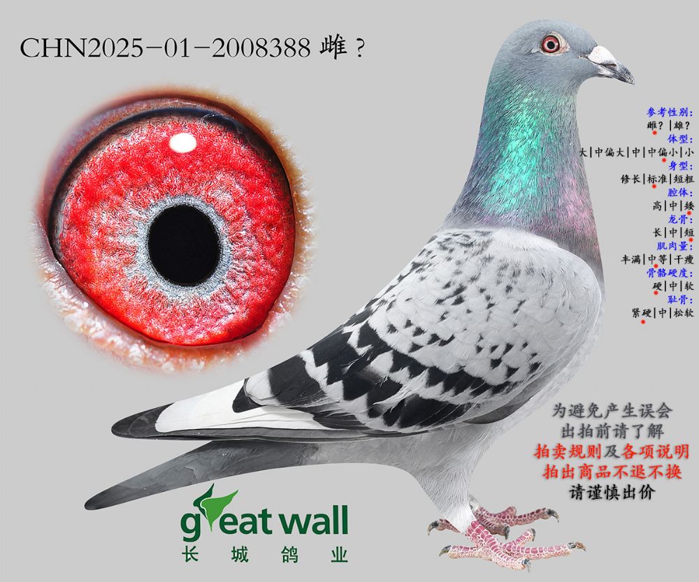 因拍賣鴿均是未做育過(guò)的種鴿或幼鴿,圖內(nèi)所標(biāo)雌雄僅供參考,實(shí)際性別已實(shí)物為準(zhǔn)。