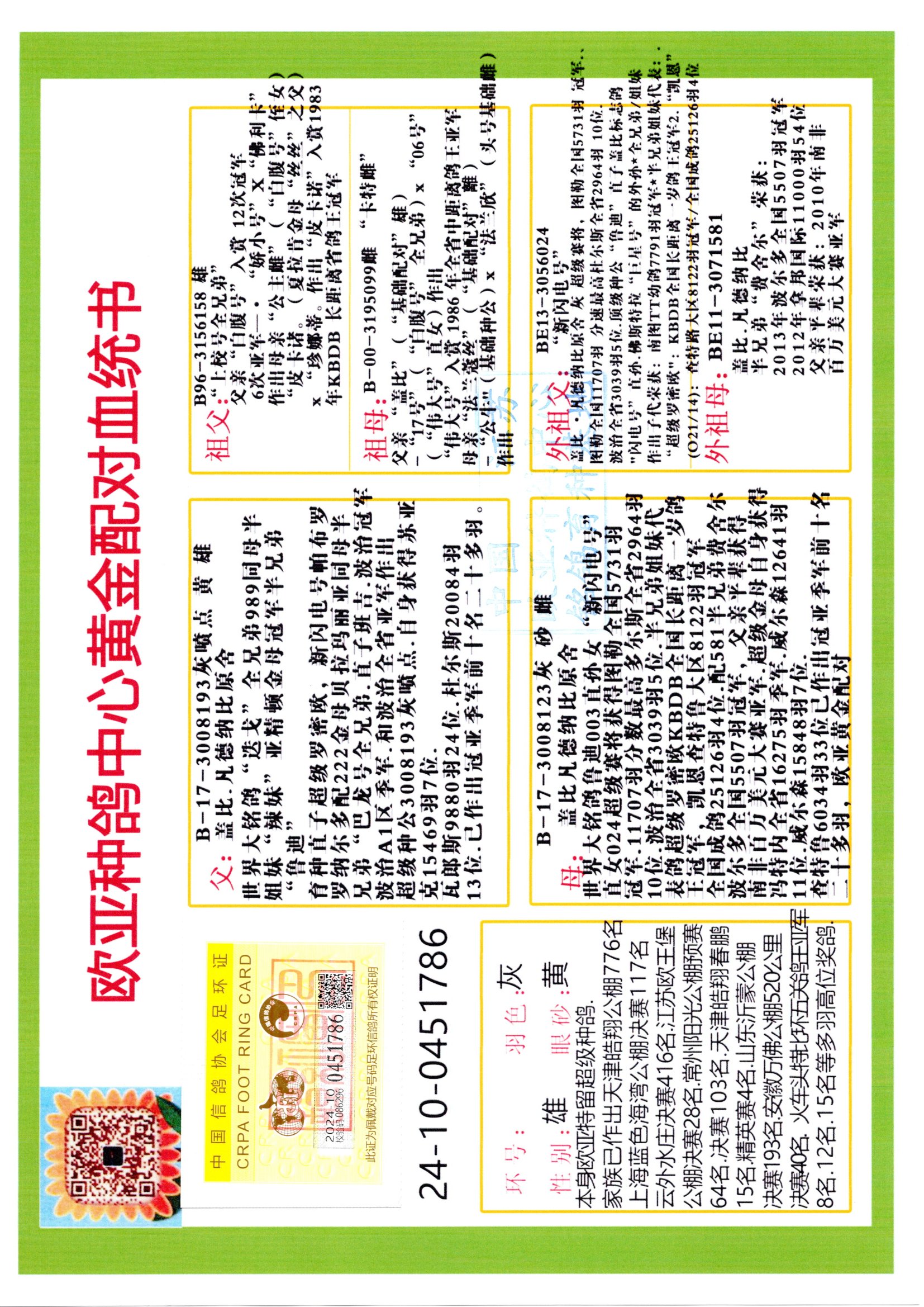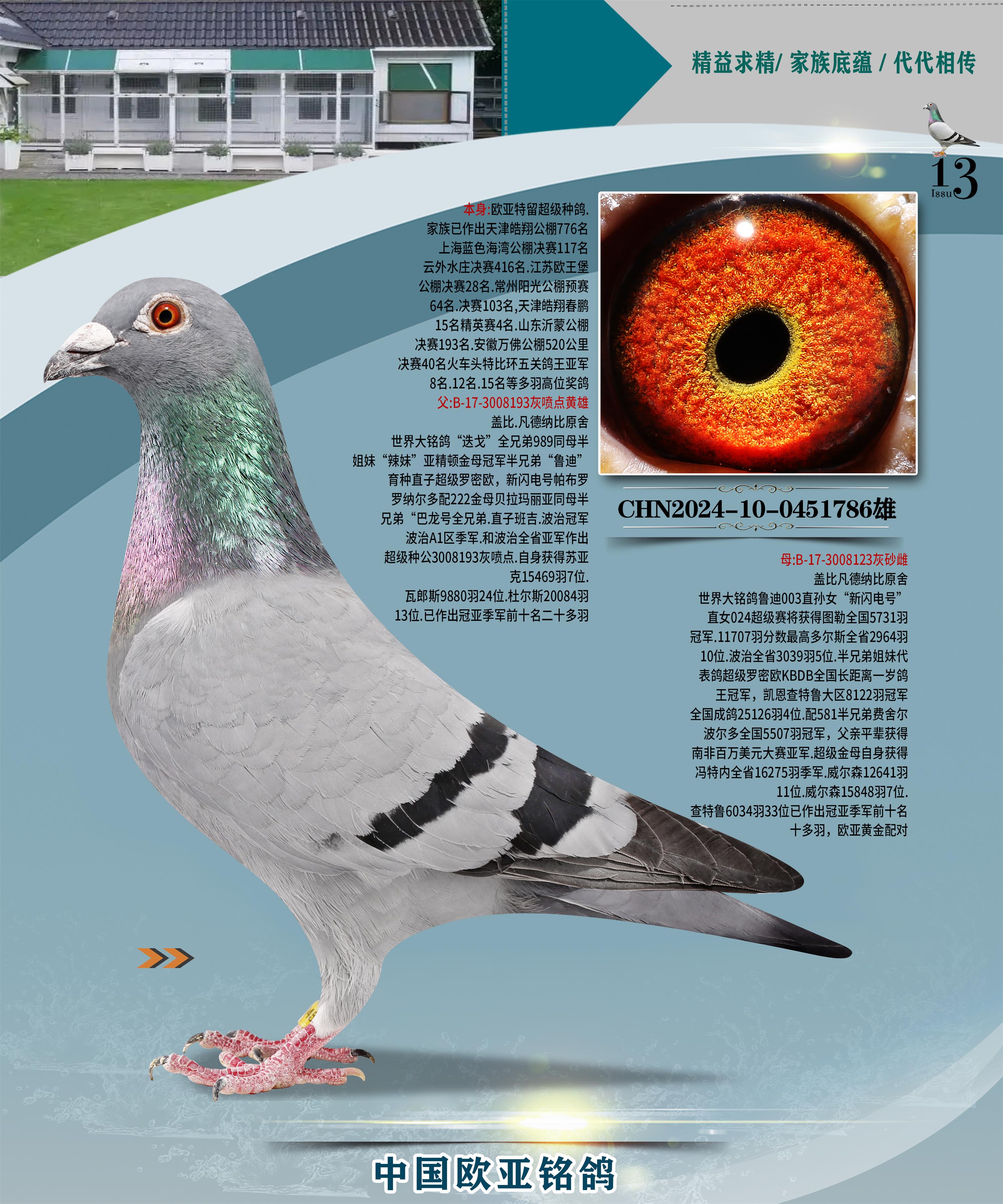 24年秋南京特比環(huán)歐亞榮獲大團(tuán)體冠軍.小團(tuán)體冠軍551公里大特比13名.14名.16名.19名.20名.21名.24名.26名.27名.28名.42名.52名.54名.57名.65名.66名.68名.70名.71名.72名.74名.76名.80名.82名.83名.84名.85名.86名.90名.92名.110名.116名.121名.122名.128名.131名.158名.161名.164名.165名.166名.172名.174名.177名.182名.195名.196名.201名.205名.208名.210名.216名.253名.269名.275名.276名.294名.296名.299名,,24年秋云南天南銅都公棚決賽415名.天南銅都小棚決賽409名.云南玉活公棚決賽102名.490名.團(tuán)體32名上籠二羽進(jìn)二羽,天南銅都大棚506公里決賽445名。熱烈祝賀河北省巨鹿縣李蘭生老師用歐亞泰山號(hào)血系連續(xù)十一年奪冠軍,河北省國家賽冠軍.全國季軍等多次前十名高位,揚(yáng)州王軍王總用歐亞利奧24年春季獲山東翔宇公棚決賽33名蓋比53名。南京劉正龍劉總用歐亞蓋比獲得24年秋山東濰坊國際公棚決賽42名.精英賽30名.三關(guān)鴿王71名.決賽86名.加站賽16名.南京市特比環(huán)A組鴿王9名.B組鴿王5名.6名.C組鴿王5名.精英賽冠軍4名.技能賽A組冠軍4名.5名.秦淮區(qū)特比環(huán)榮獲15名.46名.48名.87名。四川西昌徐亮徐總用歐亞利奧獲得涼山州聚友決賽177名.第二關(guān)亞軍雙關(guān)鴿王19名.三關(guān)鴿王105名.云南豪庭公棚決賽603名。熱烈祝賀24年四川重慶翔園鴿舍用歐亞泰山號(hào)榮獲春季400公里冠軍.秋季500公里冠軍,河北王總用詹森X利奧獲得千羽千翔公棚400公里冠軍,廣東蔡楷煥榮獲24年秋愛好者 賽鴿俱樂部三關(guān)鴿王季軍.一關(guān)420公里99名.二關(guān)450公里11名.三關(guān)520公里32名.單關(guān)季軍.7名.12名,江西李衛(wèi)興榮獲貴州紅楓公棚8名.共翔俱樂部寄養(yǎng)棚四關(guān)綜合鴿王30名.一關(guān)400公里78名.二關(guān)500公里55名.三關(guān)520公里37名.四關(guān)500公里57名.同父母獲公棚18名.雷鳴獲得武漢黃浦育翔中心冠軍,四川陳文獲得四川明鴻俱樂部300公里夢幻2名.3名.4名.9名.10名.13名.14名.15名.31名.34名.40名.41名.42名.43名.69名.71名.72名.73名.74名.94名.95名.97名.98名.99名.419公里決賽榮獲總冠軍7名.總共歸巢9羽,四川徐亮獲豪庭決賽603名,山西鄭勇獲得山西泰鑫公棚決賽255名詹森紅狐,熱烈祝賀馬總獲得開爾(飛躍隊(duì))決賽9名獲獎(jiǎng)金1310000萬元.第一關(guān)52名,天津津福資賽180公里96名.獲獎(jiǎng)金429543萬元,歐亞支持全國鴿友24年秋多人報(bào)喜 祝大家取得更好成績,給歐亞報(bào)喜鴿友歐亞決定給每人贈(zèng)送一羽超級(jí)種鴿。歐亞俱樂部特比環(huán)多關(guān)鴿王成績:15年秋淮安特比環(huán)黑色星期一全會(huì)上籠9700多羽,當(dāng)天無鴿歸巢,第二天全會(huì)歸巢357羽,本舍歸巢158羽.前十名八羽.前一百名歸巢57羽,16年春季獲五關(guān)鴿王總冠軍,總亞軍四名.六名.七名.九名.十名.晶藝俱樂部520公里冠亞季軍5名.6名.7名.9名.11名等,火車頭冠軍.季軍6名.8名.9名.10名,16年秋晶藝俱樂部特比環(huán)520公里亞軍.季軍4名.6名.7名.9名,15年春南京白下特比環(huán)冠軍.亞軍.季軍6名.7名.8名.9名.10名.指定鴿A B組獲得冠軍.亞軍.季軍4名.5名.,17年淮安特比環(huán)亞軍.4名.5名.7名.8名.10名.六關(guān)鴿王總冠軍.4名.6名.9名.10名,寄養(yǎng)棚宿遷劉總20羽特比環(huán)獲冠軍.季軍.4名.7名.8名.9名等。18年榮獲萬羽特比環(huán)六關(guān)鴿王總冠軍.總亞軍.總季軍.6名.8名.十名.單關(guān)四羽冠軍.二羽亞軍.四羽季軍.前十名27羽。19年秋萬羽特比環(huán)六關(guān)鴿王總亞軍.總季軍.5名.8名等,單關(guān)二羽冠軍.三羽亞軍.一羽季軍前十名31羽。20年秋淮安市鴿會(huì)四關(guān)特比環(huán)大賽風(fēng)雨無阻鴿王亞軍.鴿王六名,金品俱樂部萬羽特比環(huán)六關(guān)鴿王總冠軍,總亞軍.四名.五名.六名.七名.八名.十名.前二百名鴿王35羽,單關(guān)冠亞季軍前十名四十多羽,火車頭五關(guān)鴿王季軍.六名.八名.前二百名鴿王十七羽。20年春榮獲淮安五區(qū)一市四關(guān)鴿王總冠軍.亞軍.四名.八名.九名。21年秋榮獲金品萬羽特比環(huán)大賽六關(guān)鴿王總亞軍.總季軍.四名.七名.九名.十名.單關(guān)冠亞軍季軍前十名三十多羽;疖囶^協(xié)會(huì)鴿王六名.七名.十名.單關(guān)前十名十七羽。22年秋榮獲鴿王總冠軍.總亞軍.5名.7名.8名.9名.11名.單關(guān)冠亞季軍前十名三十多羽,第一關(guān)單關(guān)前二百名四十多羽,第二關(guān)前二百名三十多羽,第三關(guān)前二百名四十多羽,第四關(guān)前二百名四十多羽,第五關(guān)前一百名53羽。23年秋榮獲鴿王季軍.五名.八名.十名.13名.17名.20名.27名等多羽鴿王.單關(guān)前十名二十多羽。公棚.寄養(yǎng)棚部分成績:16年秋寧夏黃河公棚總冠軍電腦戈馬力指定通炮冠軍,17年送八羽參賽獲得鴿王八名進(jìn)獎(jiǎng)四名,支持韓總榮獲八名。支持鴿友榮獲寧夏中衛(wèi)公棚決賽總冠軍.精英賽冠軍,支持18年寧夏黃河公棚決賽冠軍詹森X泰山。安徽鼎博寄養(yǎng)棚院內(nèi)外四關(guān)鴿王總冠軍.鴿王十七名.三十七名同窩,鴿王39名.42名.58名.67名。18年山東公棚預(yù)賽冠軍.決賽65名.送八羽進(jìn)獎(jiǎng)五羽.指定獲奔馳汽車一輛。支持鴿友獲得云南藍(lán)云公棚冠軍.蓋比X佛卡門。支持鴿友榮獲云南銀集公棚決賽冠軍 詹森427X520血系 速度賽6700羽冠軍。17年榮獲金馬俱樂部寄養(yǎng)棚四關(guān)鴿王總冠軍.季軍.六