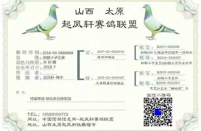 上傳血統(tǒng)書的隨鴿發(fā)出。]有上傳的不提供血統(tǒng)書。〗橐馕鹋!