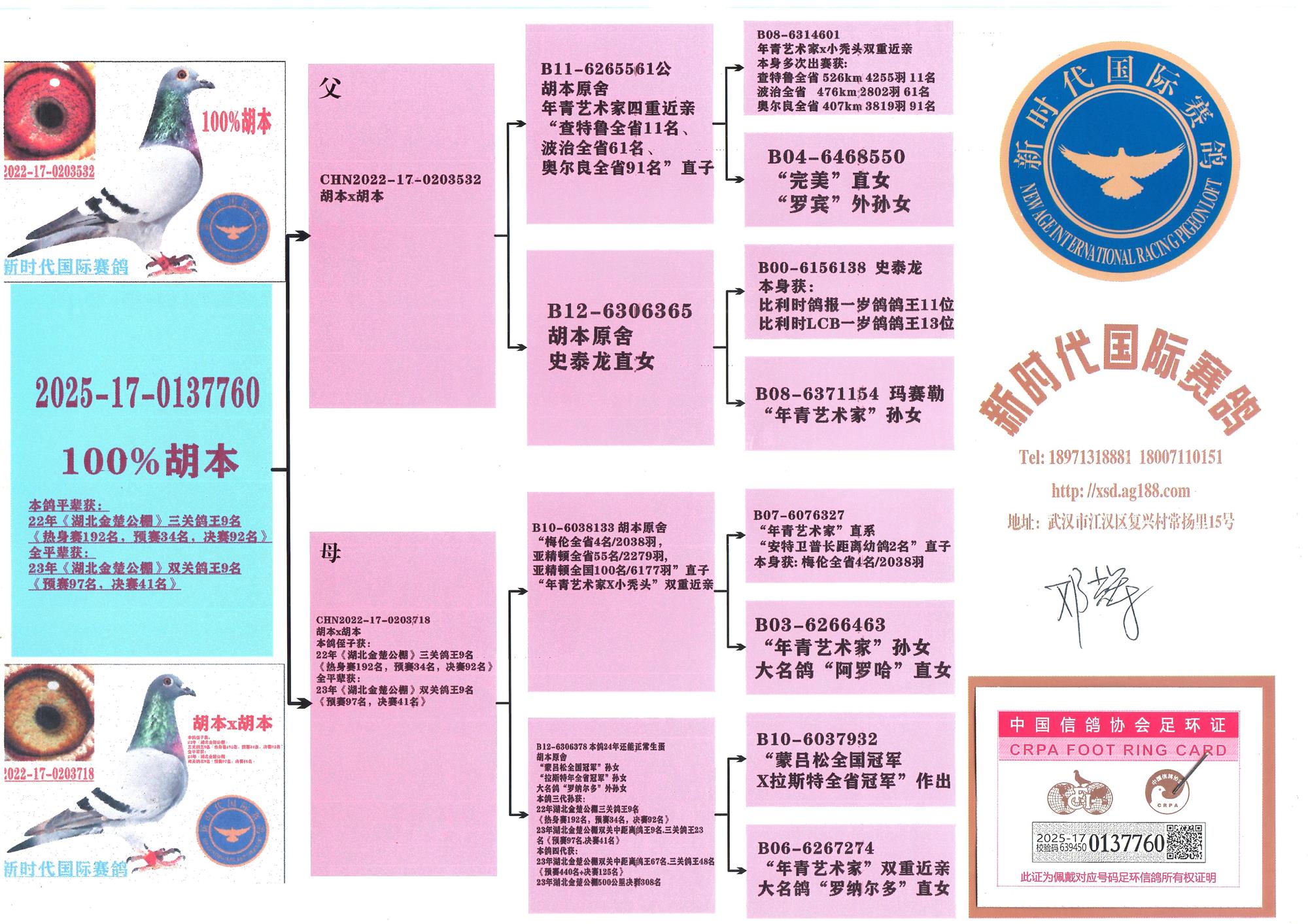 胡本頂級銘鴿-全國鴿王”史泰龍“直女
