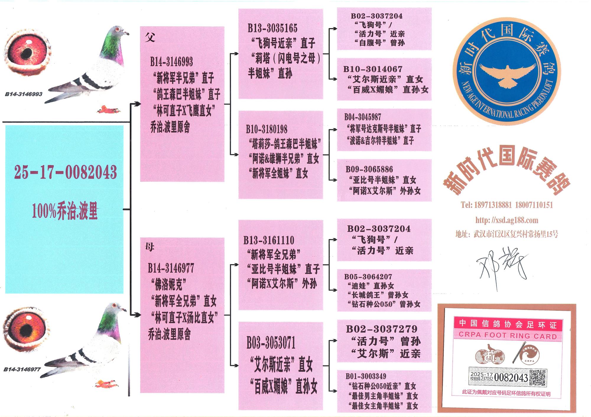 “賽布瑞契”是“長(zhǎng)城鴿王”X“黃金雌”(“拿邦號(hào)”全姐妹)作出