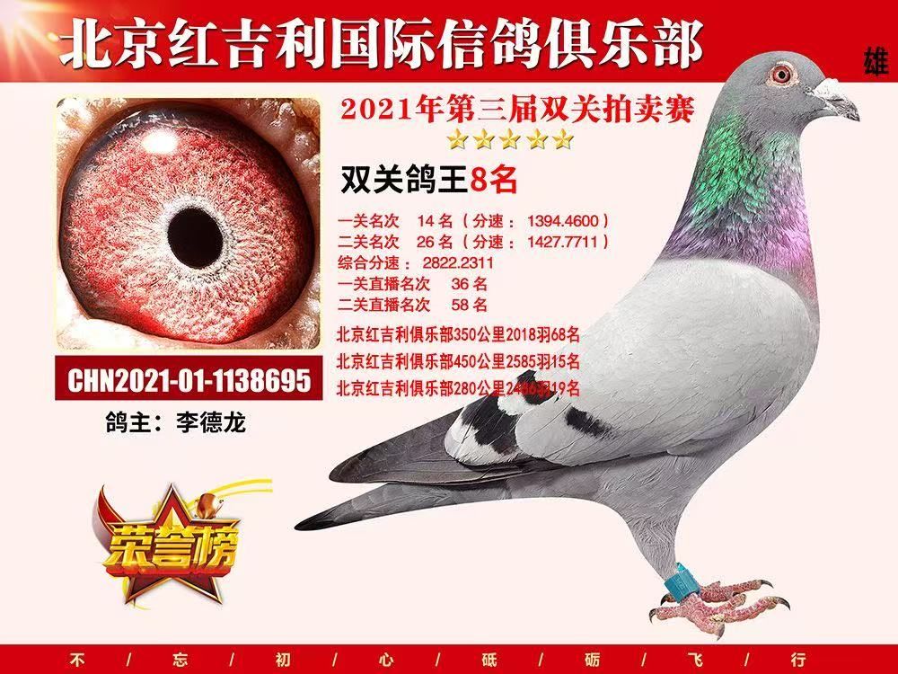 北京紅吉利賽鴿俱樂部雙關(guān)拍賣賽綜合鴿王8名;