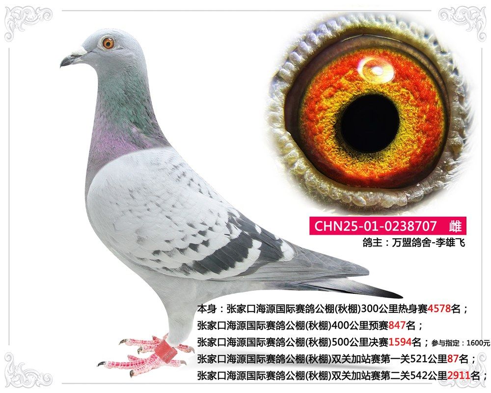 張家口海源國(guó)際賽鴿公棚(秋棚)500公里決賽1594名;參與指定:1600元;