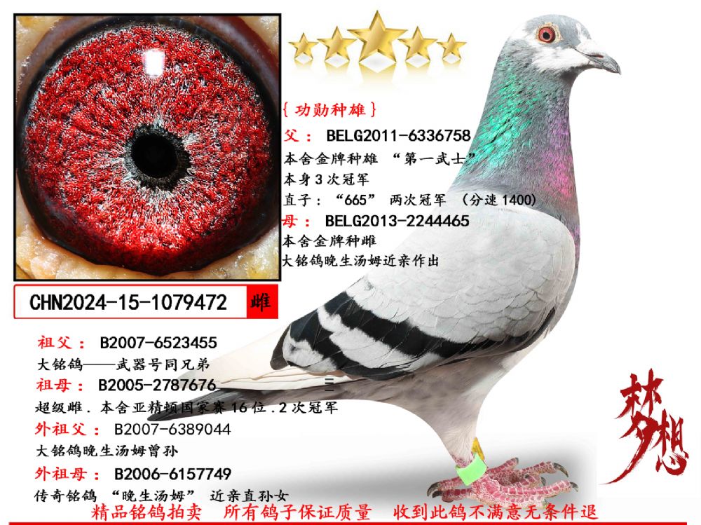 | 1624759 | 桑杰士“鴿王之王”鉆石金母 | ¥600元 | 0次 |