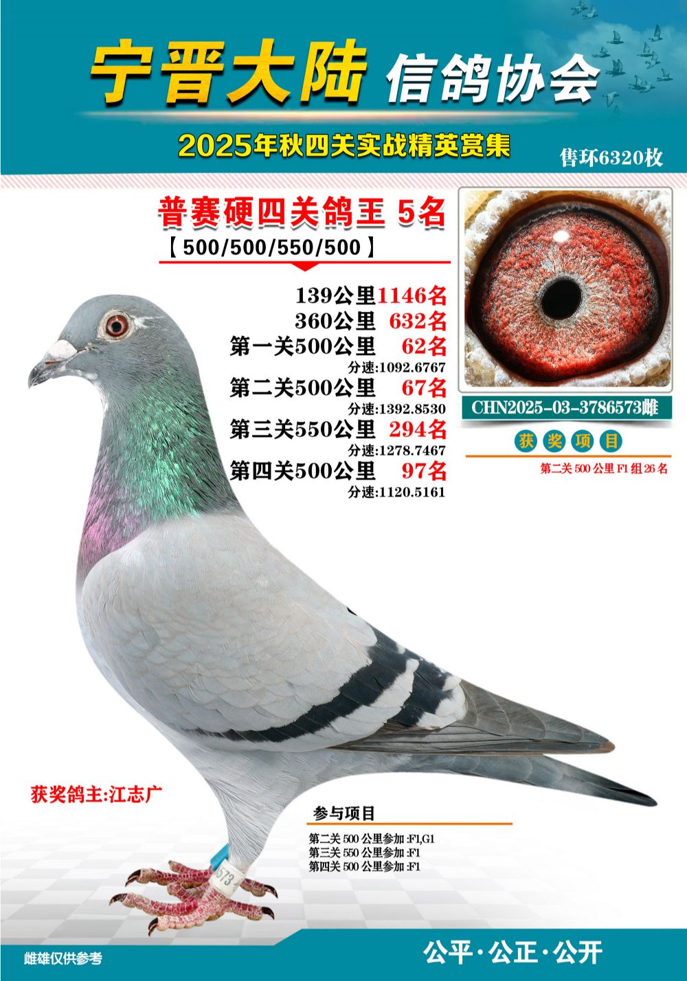 - 當前查看拍賣鴿:大陸普賽四關鴿王5名