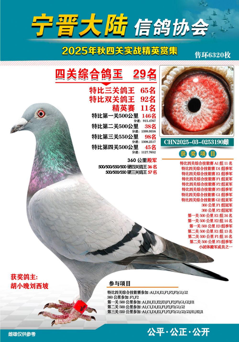 - 當前查看拍賣鴿:大陸特比四關鴿王29名