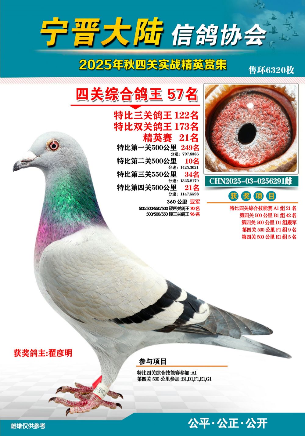 - 當前查看拍賣鴿:大陸特比四關鴿王57名