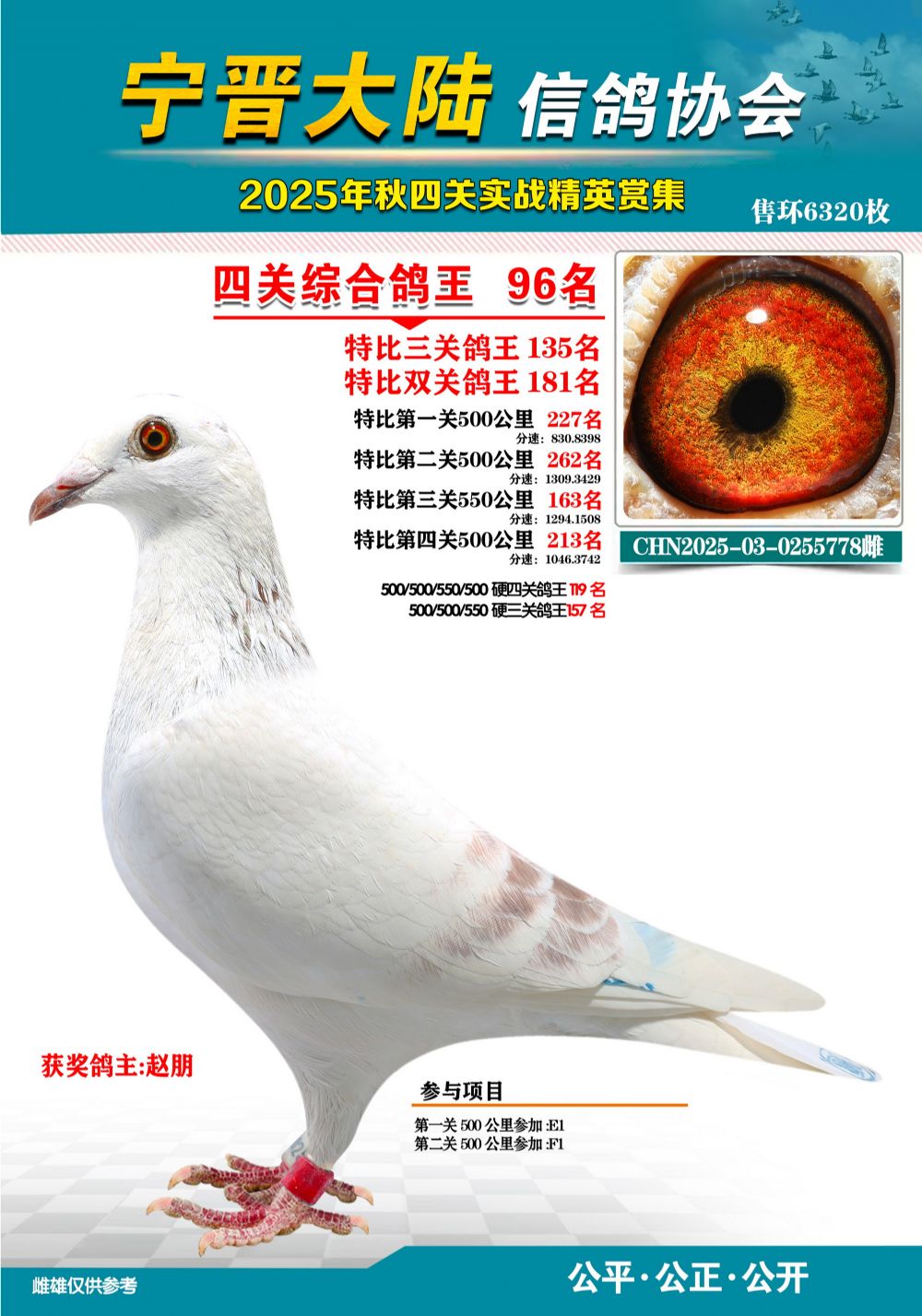 - 當前查看拍賣鴿:大陸特比四關(guān)鴿王96名
