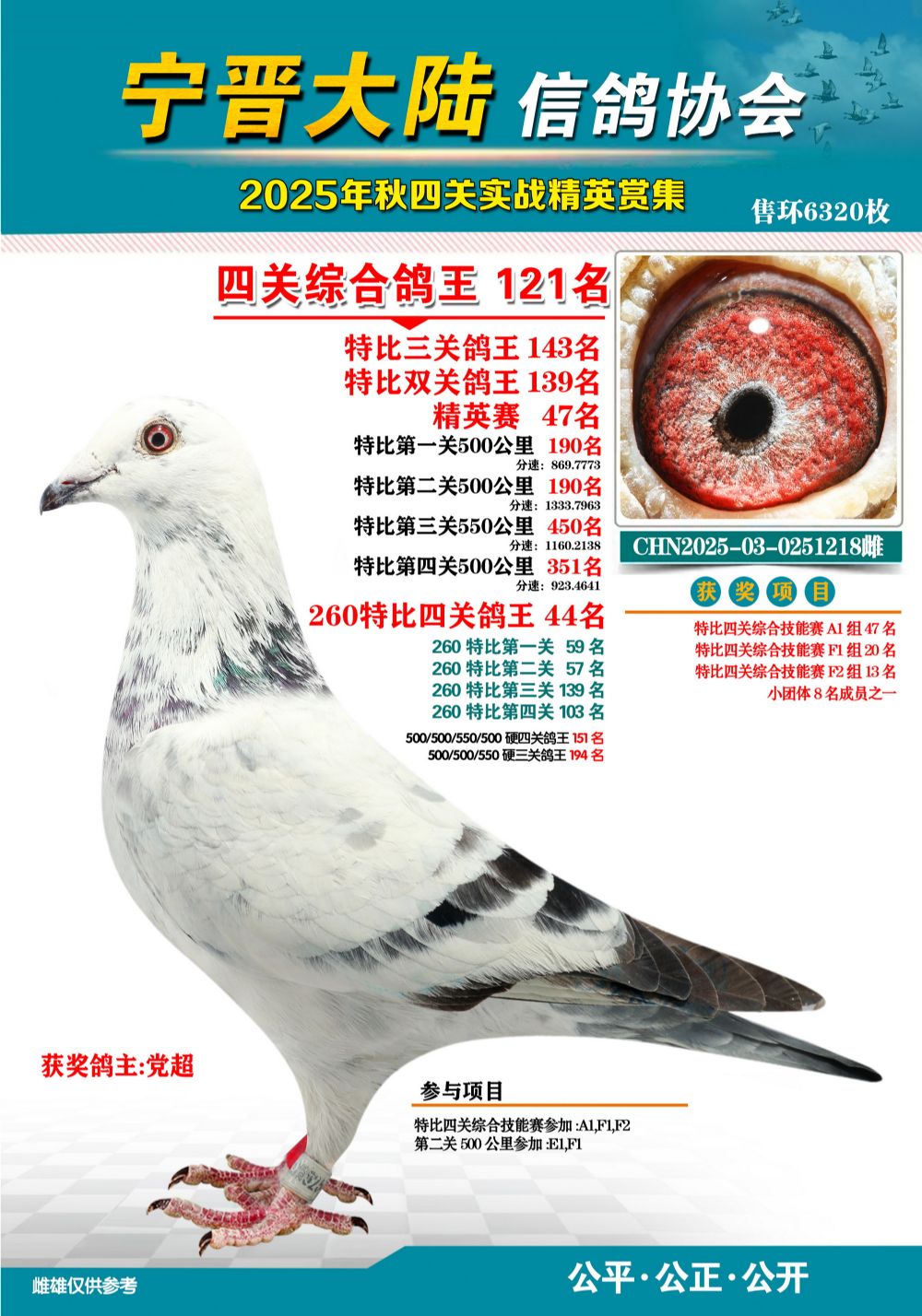 - 當前查看拍賣鴿:大陸特比四關(guān)鴿王121名