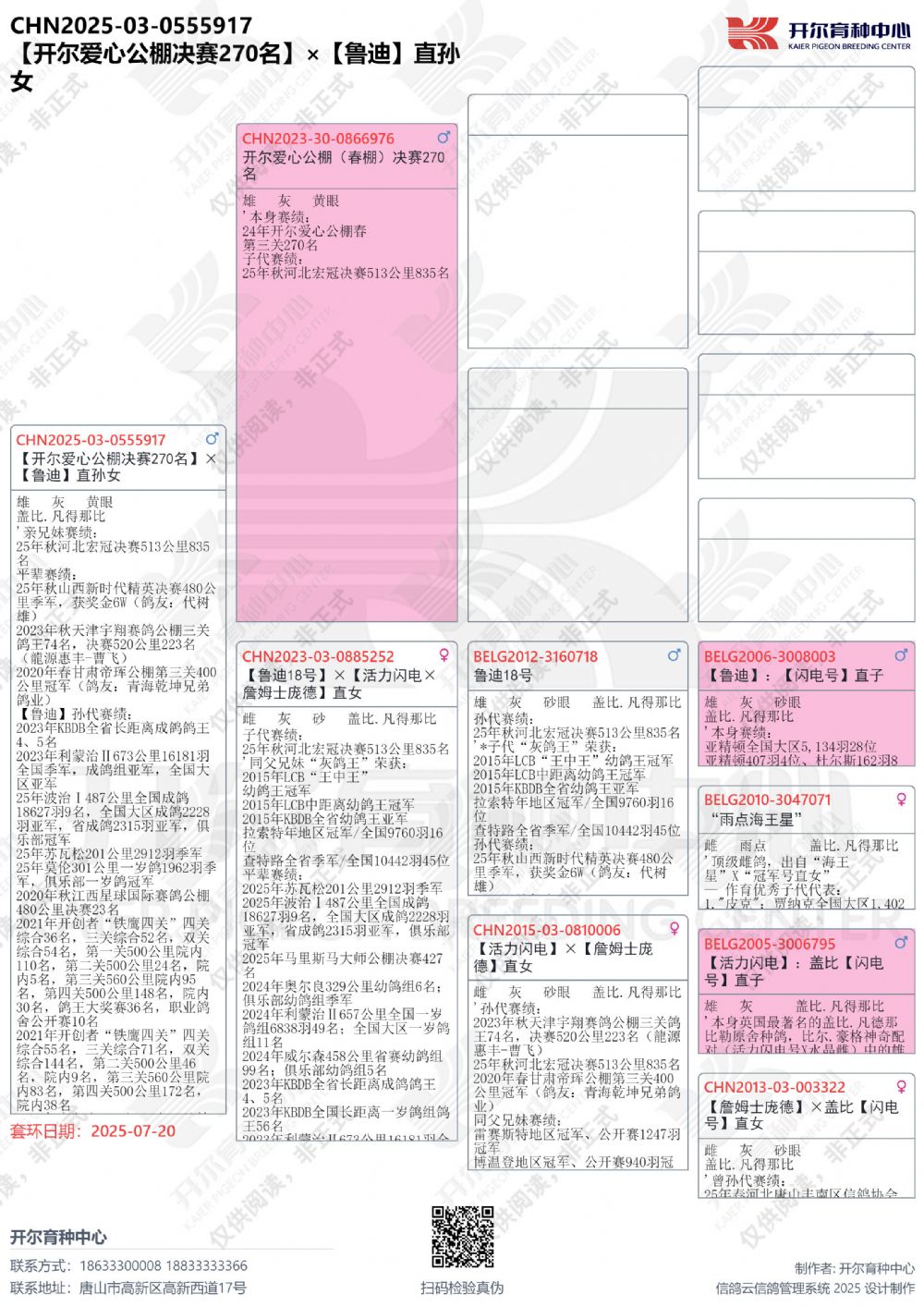 | 1624977 | 索朗格直孫×19年開(kāi)爾公棚雙關(guān)鴿王86名 | ¥3000元 | 1次 |