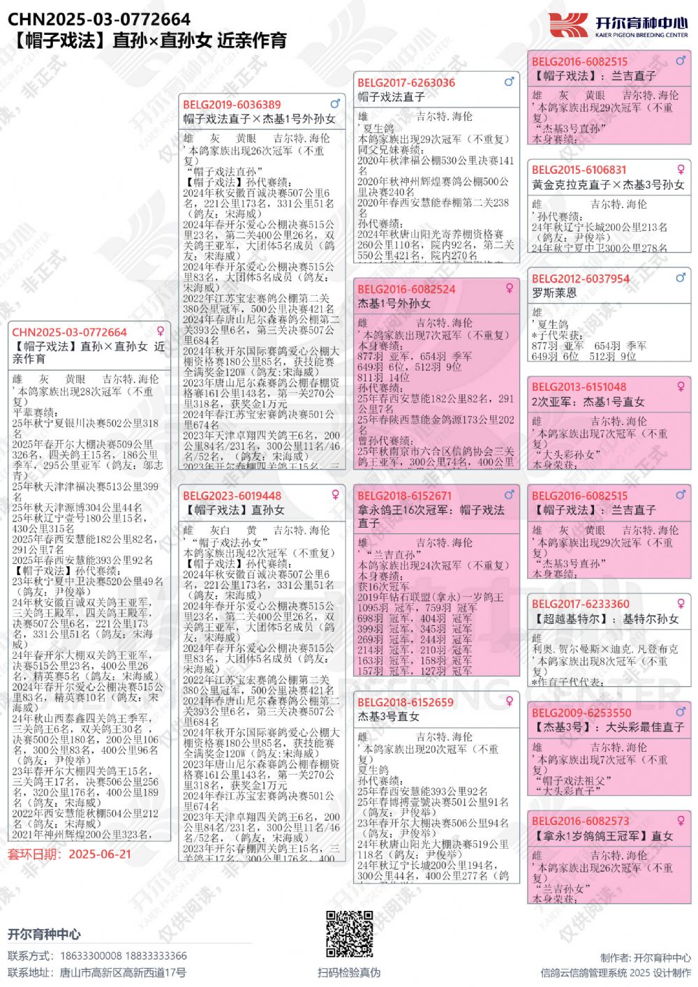 | 1624977 | 索朗格直孫×19年開爾公棚雙關(guān)鴿王86名 | ¥3000元 | 1次 |