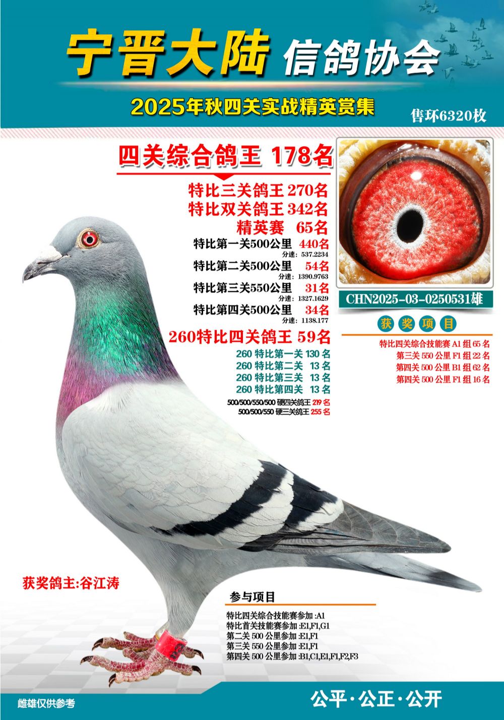 - 當前查看拍賣鴿:大陸特比四關鴿王178名