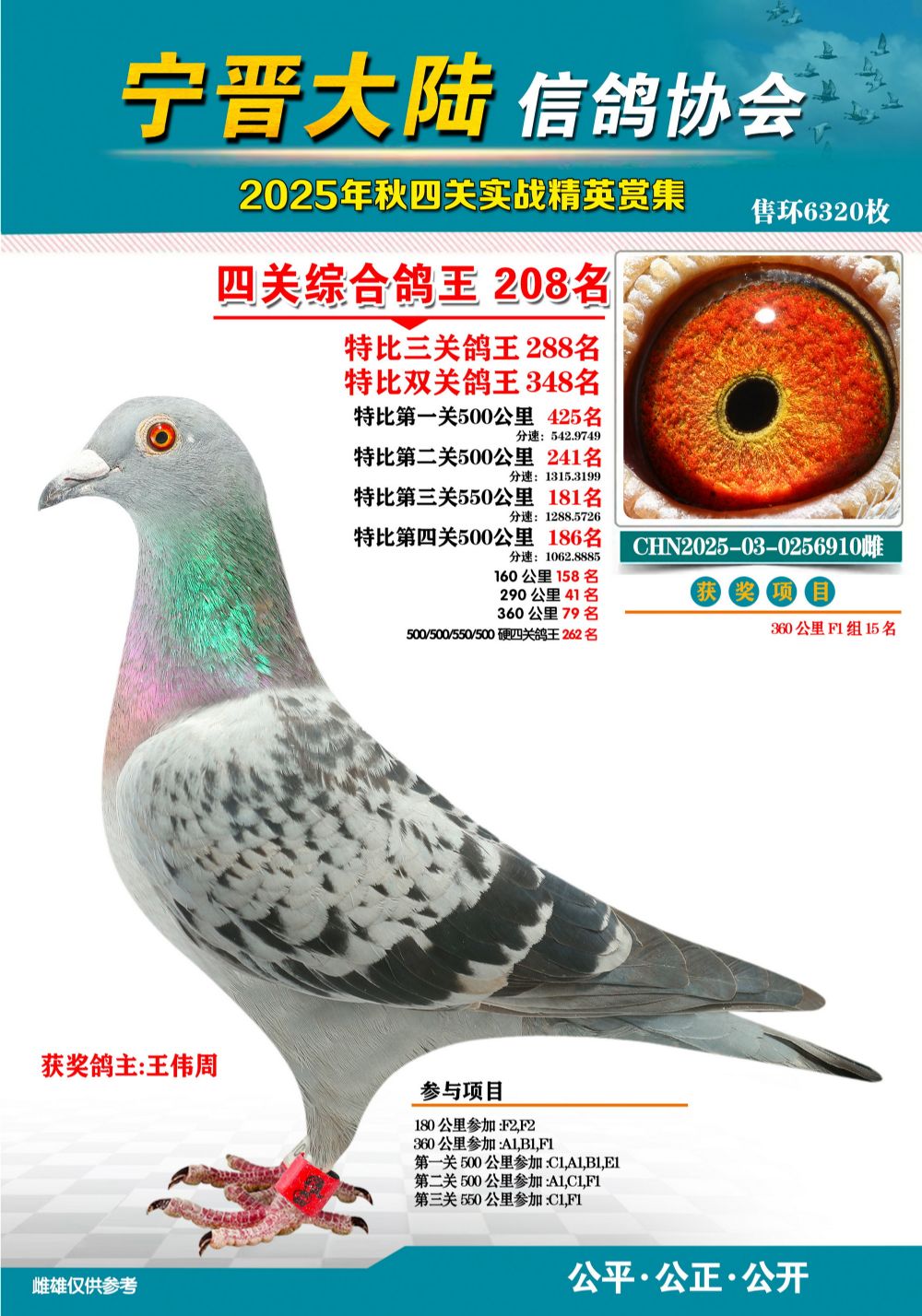 - 當前查看拍賣鴿:大陸特比四關鴿王208名