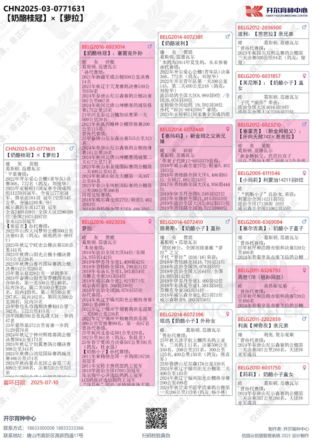 | 1625096 | 神鷹300直子×開爾大棚三關(guān)鴿王季軍直孫女 | ¥3500元 | 2次 |