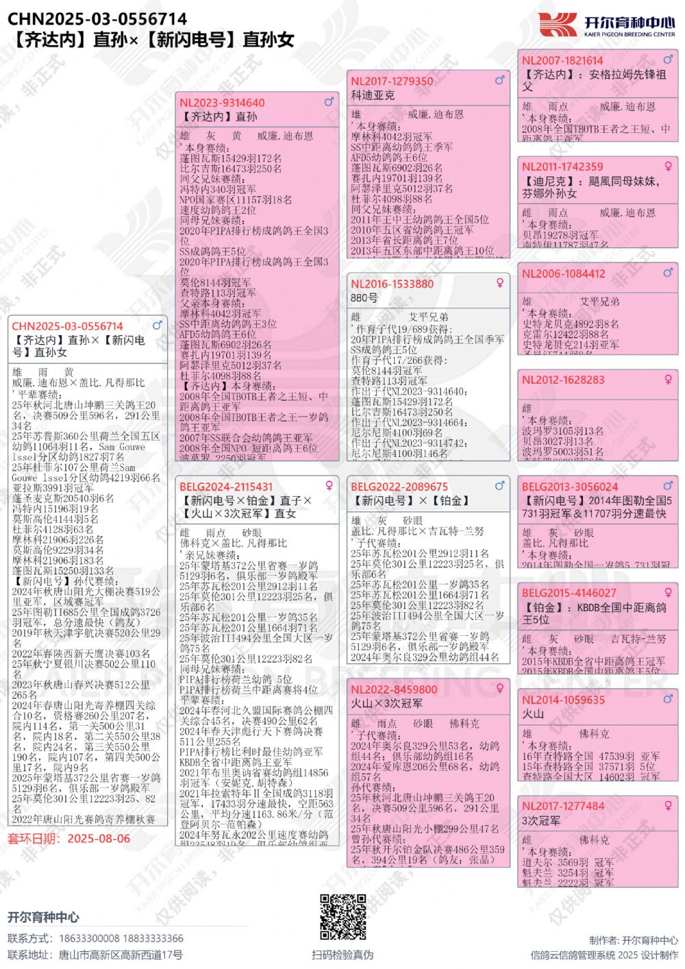| 1625095 | 閃電哈利直子×開爾大棚三關(guān)鴿王季軍直女 | ¥3500元 | 2次 |