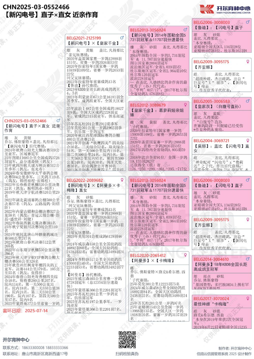 | 1625095 | 閃電哈利直子×開爾大棚三關(guān)鴿王季軍直女 | ¥3500元 | 2次 |