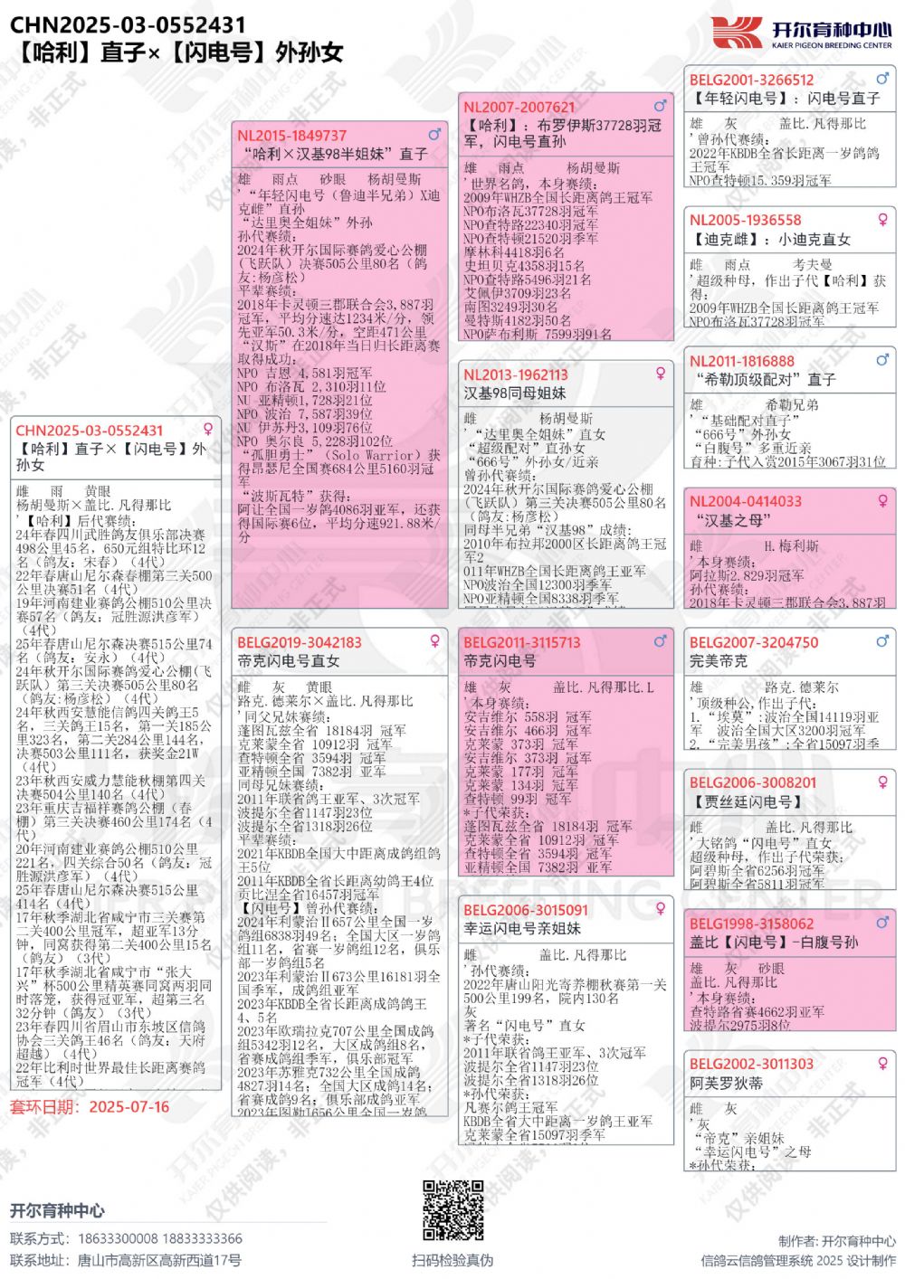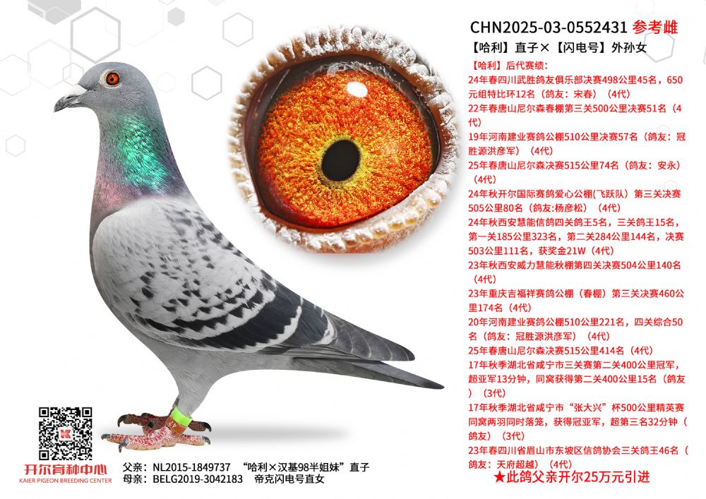 | 1625095 | 閃電哈利直子×開(kāi)爾大棚三關(guān)鴿王季軍直女 | ¥3500元 | 2次 |