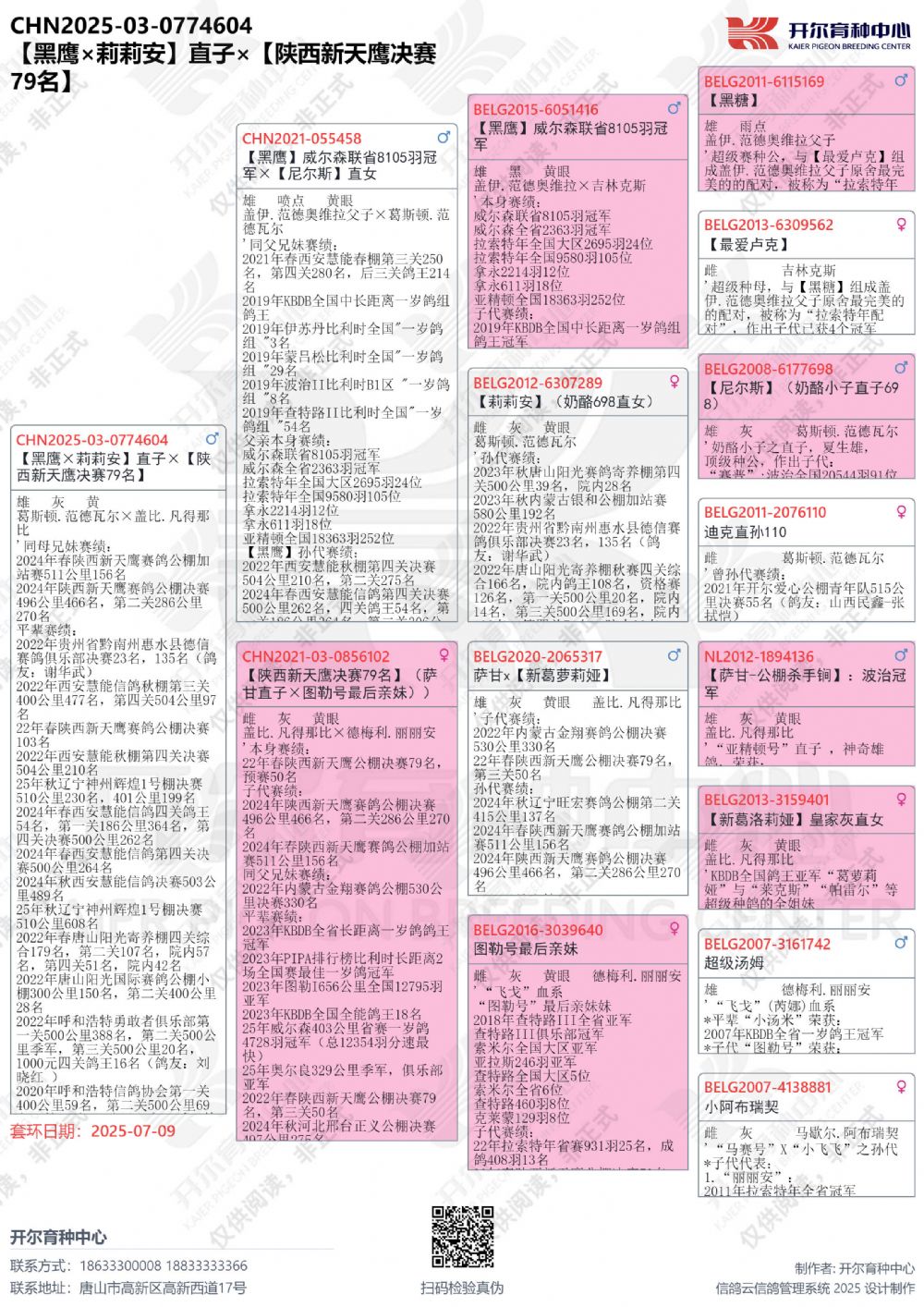 | 1625096 | 神鷹300直子×開爾大棚三關(guān)鴿王季軍直孫女 | ¥3500元 | 2次 |