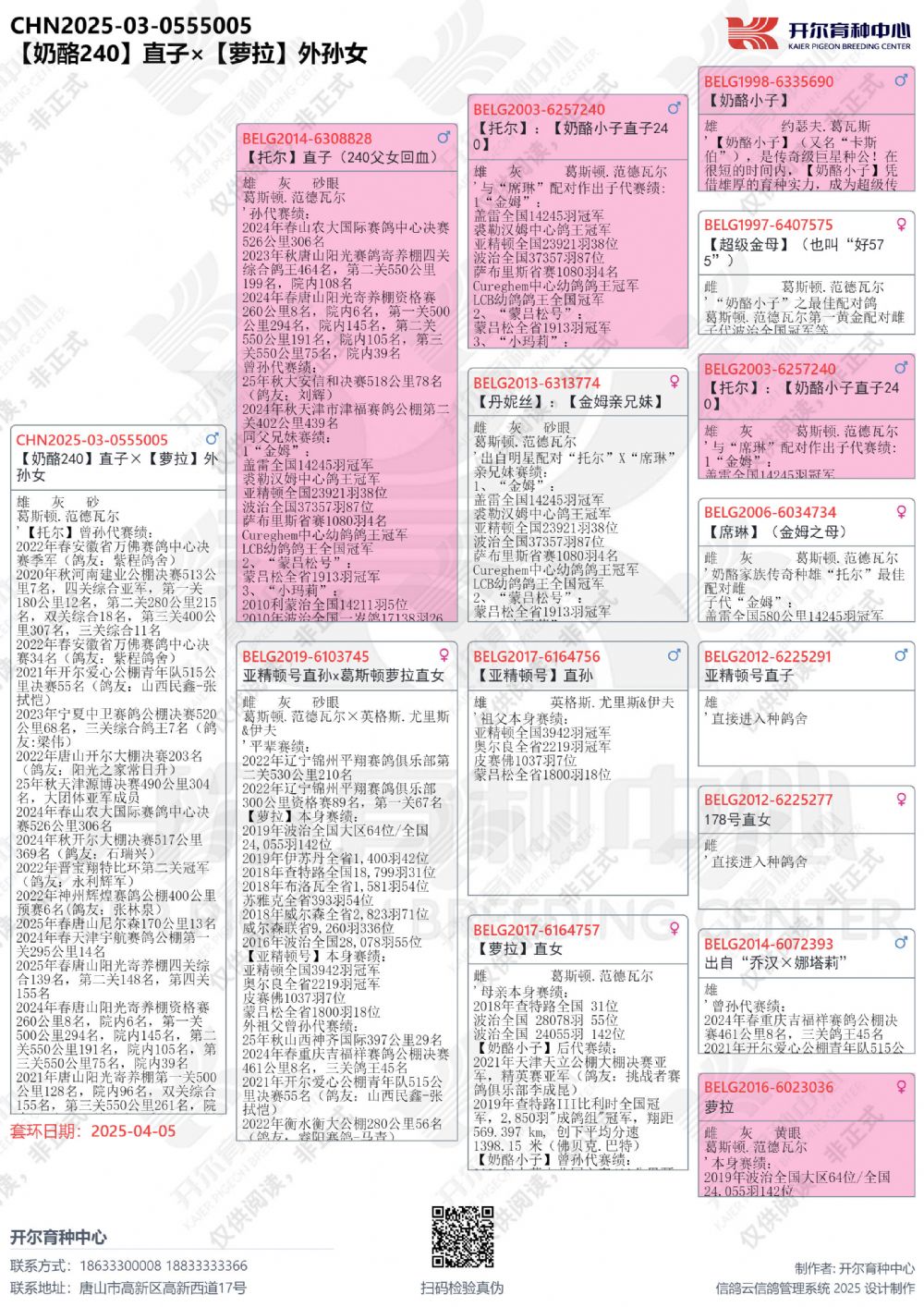 | 1625096 | 神鷹300直子×開爾大棚三關(guān)鴿王季軍直孫女 | ¥3500元 | 2次 |