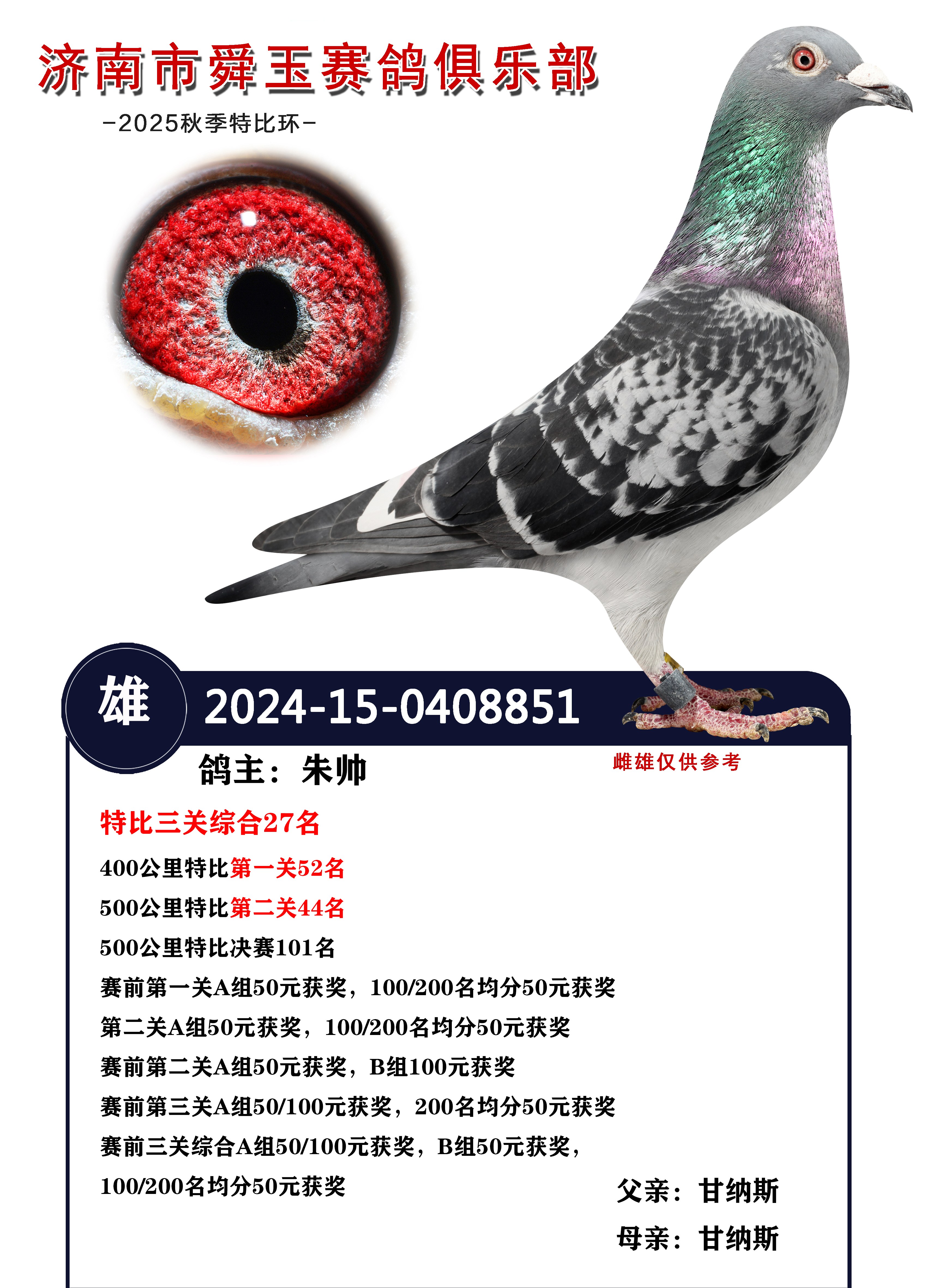 - 足環(huán)號:2024-15-0408851 雄砂雨白條