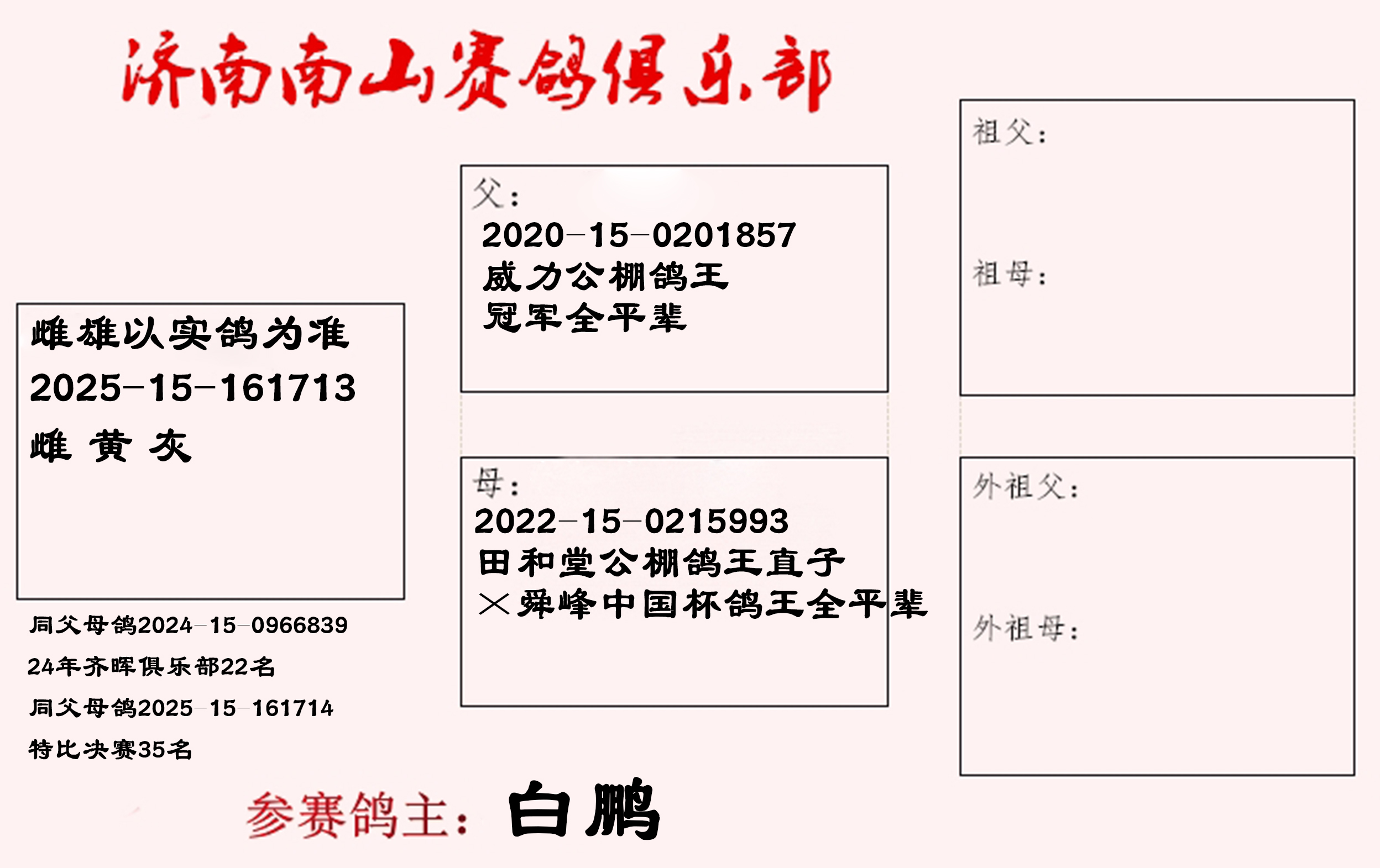 同父母鴿2024-15-0966839,24年齊暉俱樂部22名